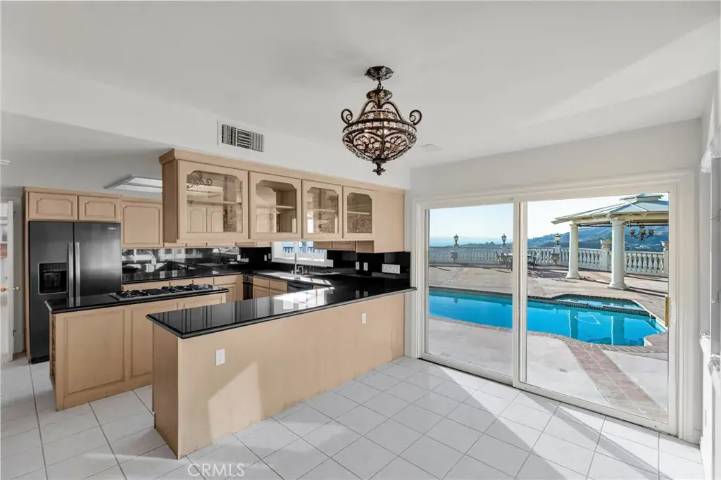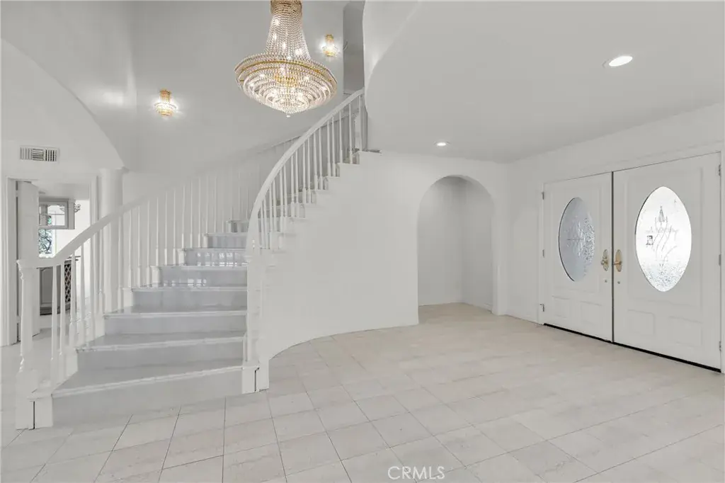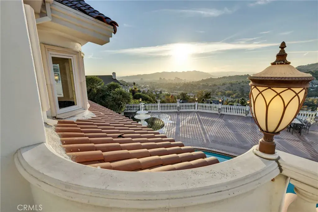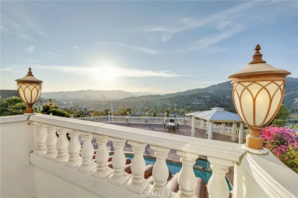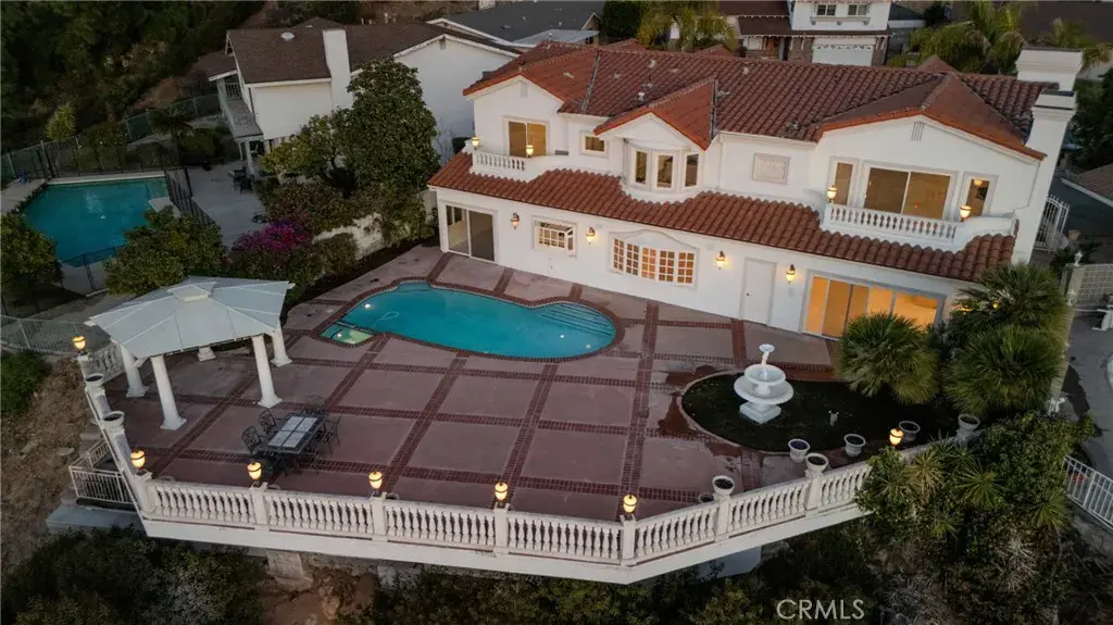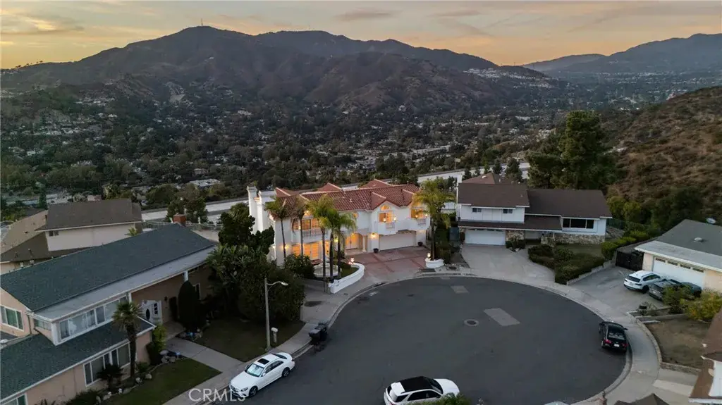 This exclusive Mediterranean estate, set in a safe cul-de-sac in the coveted 91208 zip code of Glendale, offers breathtaking 180-degree panoramic views of downtown Glendale, the Los Angeles skyline, Oakmont Hills, and Montrose foothills. With over 4,118 sq ft of high-end luxury finishes, this 4-suite, 4-bath residence is designed for refined living. A grand double-door entry opens to a custom wood spiral staircase, leading to the Family Room and formal Living Room with Italian marble fireplaces, as well as a gourmet Kitchen with a cozy Breakfast Nook.