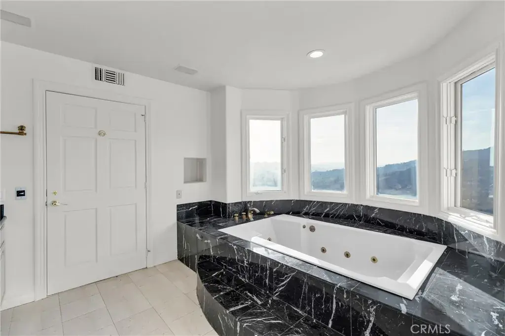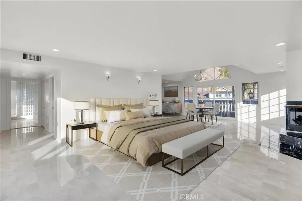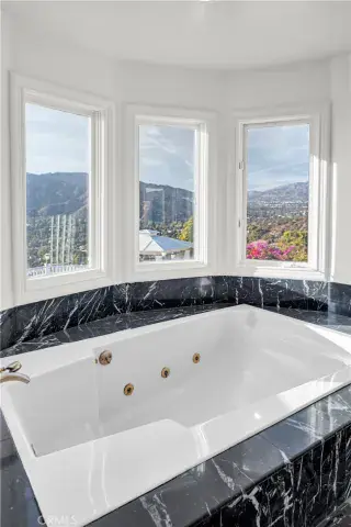 The expansive Master Suite includes a seating area, fireplace, walk-in closet, and private balcony, with a luxurious bath featuring a deep-soaking whirlpool tub that overlooks the city. An additional Master Bedroom also offers a private en-suite bath, making it ideal for guests or multi-generational living. Each bedroom enjoys its own private balcony, adding to the home’s sense of seclusion and charm.