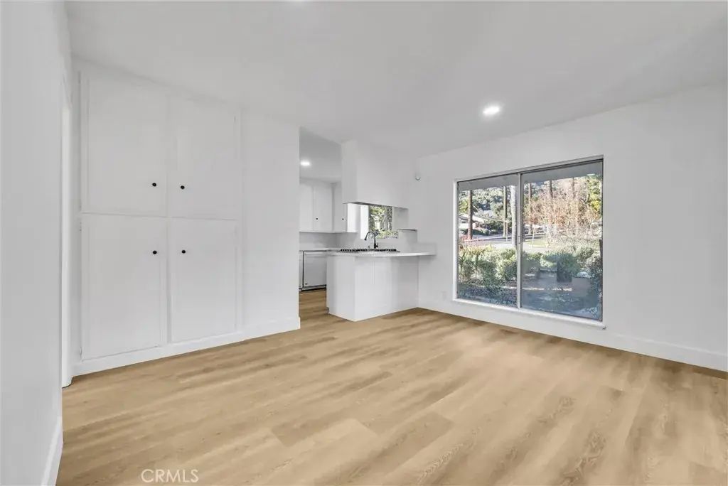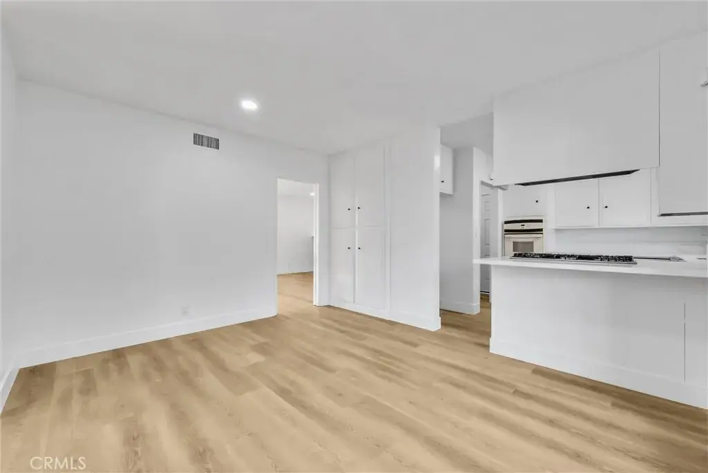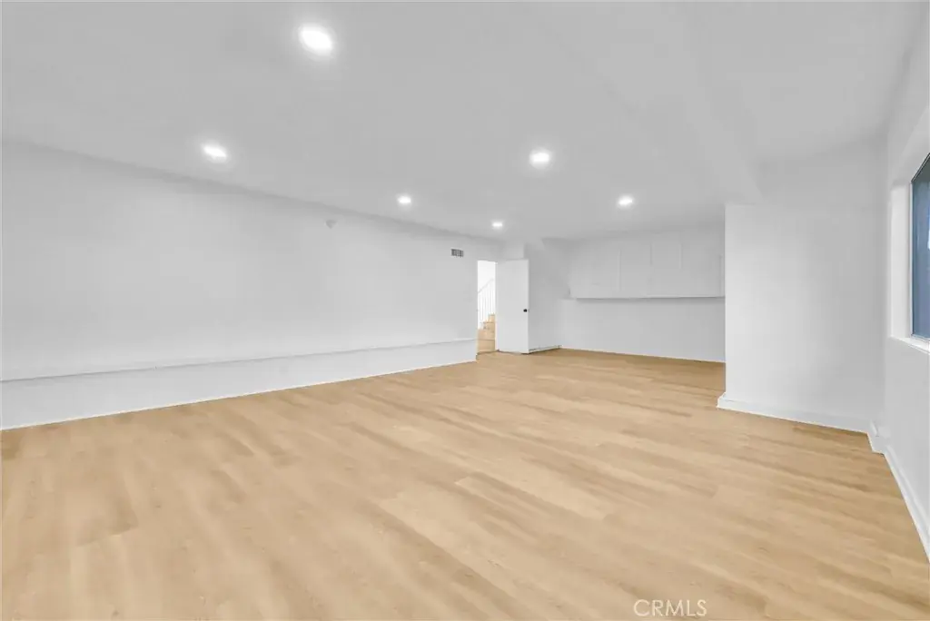 The interior has been extensively refreshed with brand new interior paint, luxury vinyl flooring throughout, and new recessed lighting in every room, creating a bright and cohesive feel. The kitchen serves as a central gathering space, finished with quartz countertops, freshly painted cabinetry, and brand new appliances including a dishwasher, stovetop, hood, and garbage disposal. Bathrooms continue the modern aesthetic with quartz surfaces, LED-lit mirrors, and new toilets.