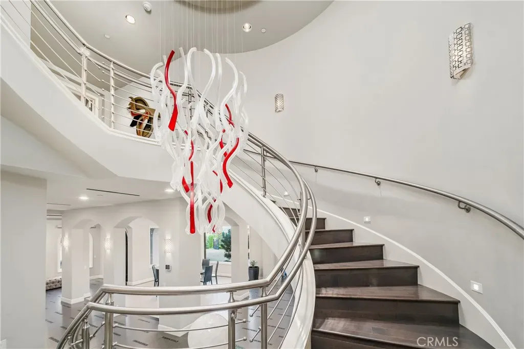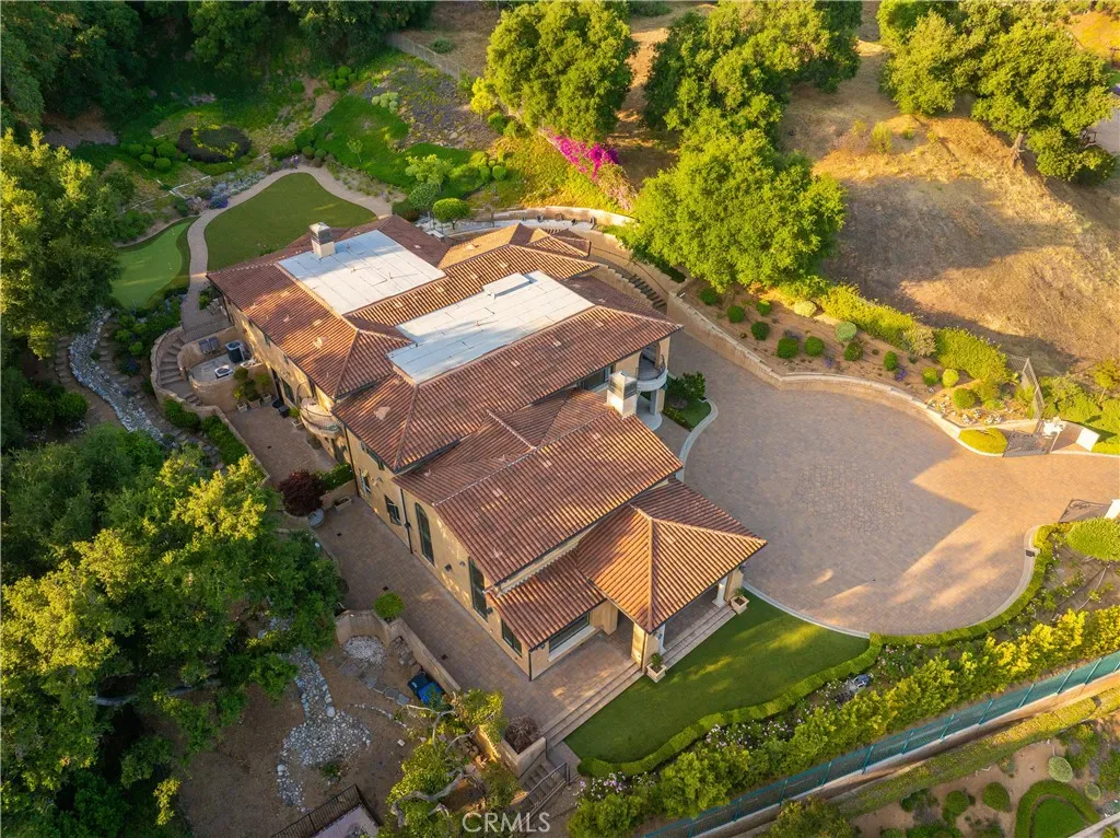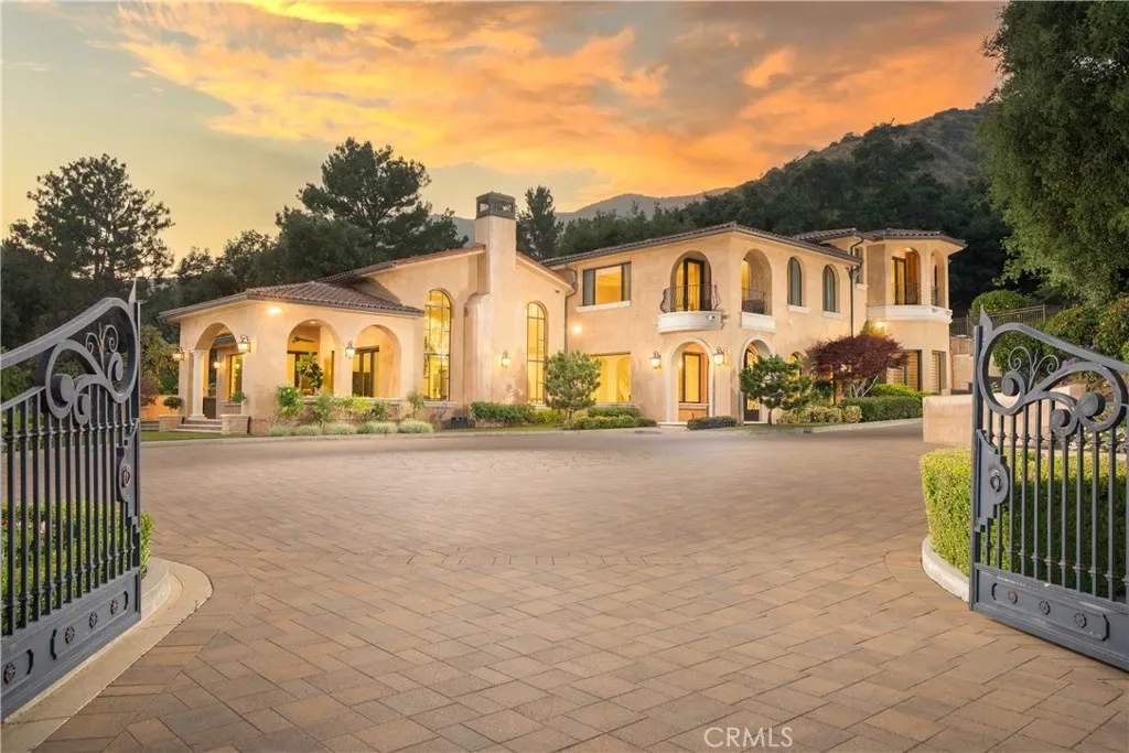 Experience the height of luxury and privacy in this breathtaking custom estate nestled in the foothills of North Glendora. Built in 2012 and situated behind private gates on a spacious one-acre lot, this one-of-a-kind residence offers an extraordinary blend of elegance, comfort, and cutting-edge smart technology, all set against a stunning backdrop of panoramic city and mountain views. Boasting 6 bedrooms, 5.5 bathrooms, and nearly 6,800 square feet of sophisticated living space, every inch of this home showcases exquisite craftsmanship and the finest materials. Enter through grand double iron doors into a dramatic formal entry, where a designer chandelier and gleaming finishes set the tone. The heart of the home is the expansive great room featuring high ceilings, a custom fireplace, wet bar, and French doors that open to a serene-covered patio. The adjacent state-of-the-art kitchen is a chef’s dream, complete with a Miele appliance suite, Bulthaup cabinetry, a central island, and a fully equipped wok kitchen with a built-in fryer, super burner, and Viking hood. Retreat to the luxurious primary suite with a private sitting area, balcony overlooking the city, spa-inspired bathroom with a steam shower, air jet tub, and dual vanities. Additional highlights include a private office, game/theater room with wet bar and fireplace, and a spacious playroom. Modern convenience meets timeless elegance with a full home automation system, integrated sound throughout, custom window coverings, and even a commercial-grade elevator. The attached six-car garage (approx. 1,400 SF) provides ample space for vehicles and storage.