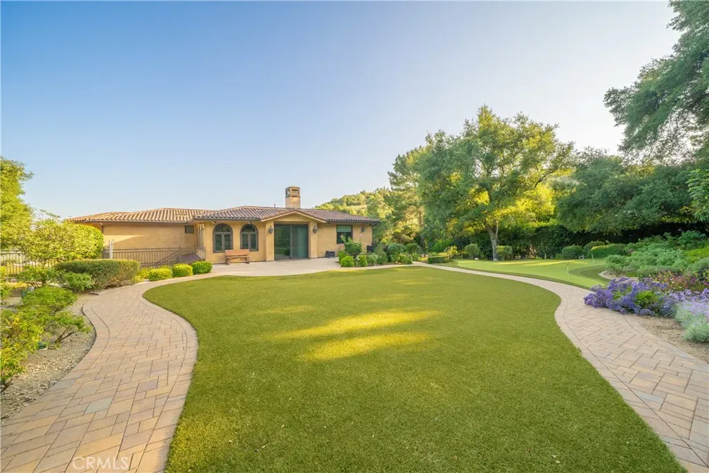 Outside, the park-like grounds offer a peaceful escape with mature oak trees, fruit trees, a putting green, and plenty of space to relax or entertain.