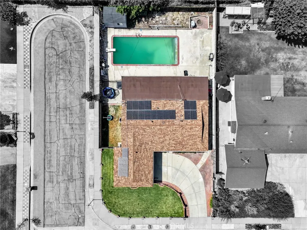 Major system upgrades include a new HVAC system and water heater installed in 2024, along with an updated electrical panel and dual pane windows. Additional improvements include solar panels, energy efficient pool equipment, recessed lighting and crown molding.