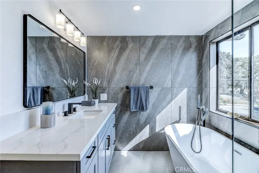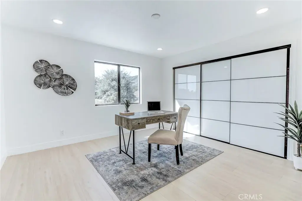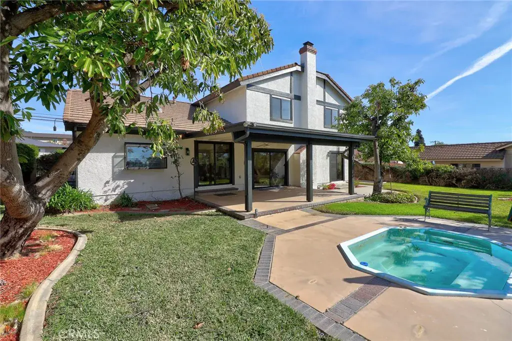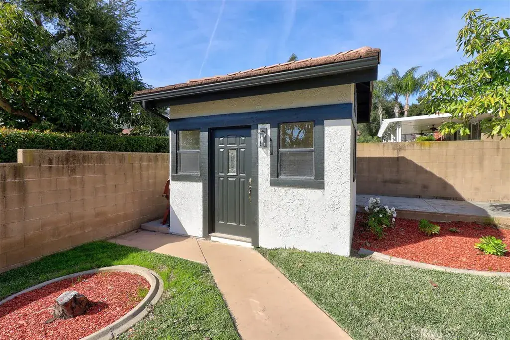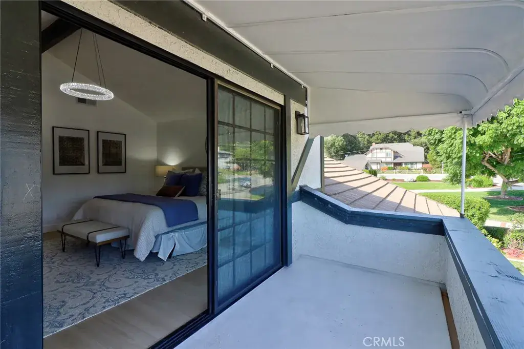 The step-down family room is rich in character, highlighted by a statement brick-mantled fireplace, a full wet bar, and an expansive sliding door that enhances the home’s indoor-outdoor lifestyle. A desirable downstairs bedroom suite offers privacy and flexibility, complete with yard access and serene mountain views. The adjacent three-quarter bath has been beautifully reimagined with quartz counters, designer cabinetry, and direct outdoor access—ideal for guests or future pool convenience. Ascending the modern glass-balustrade staircase, the primary suite serves as a true private retreat. Enjoy a covered balcony, dual custom closets with elegant Japanese koji-style doors, and a spa-inspired bath featuring a soaking tub, separate shower, dual vanities, and a state-of-the-art Japanese bidet toilet. Two additional upstairs bedrooms capture picturesque backyard and mountain vistas and share a tastefully remodeled bath appointed with a waterfall shower and premium finishes. The backyard is a tranquil sanctuary, thoughtfully landscaped and centered around an inviting in-ground hot tub. A detached structure with electricity offers endless possibilities whether envisioned as a private fitness studio, creative workspace, executive office, or refined retreat.