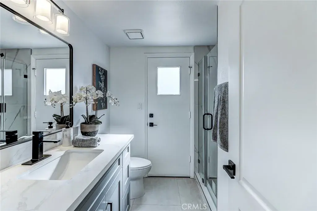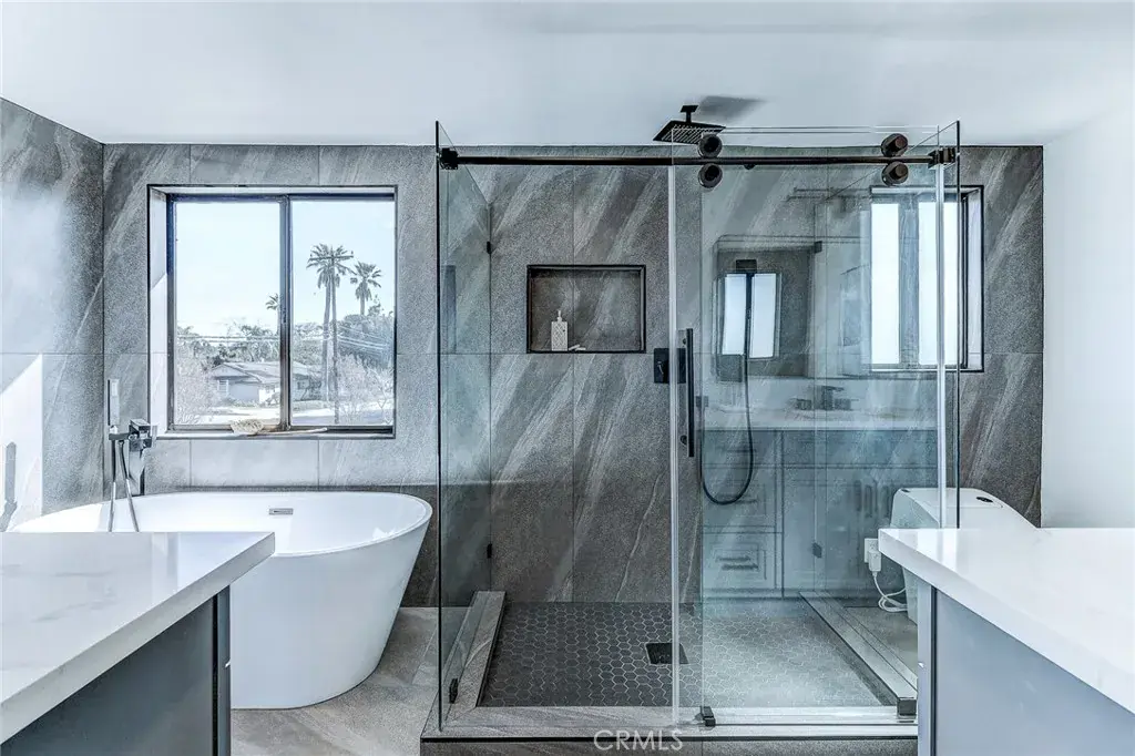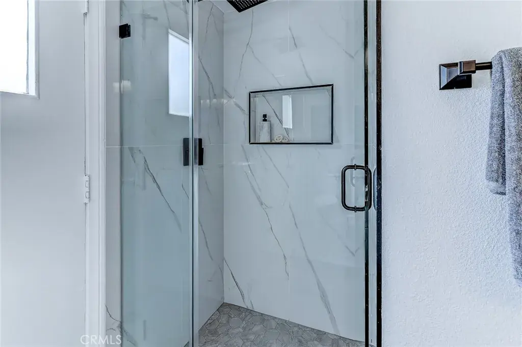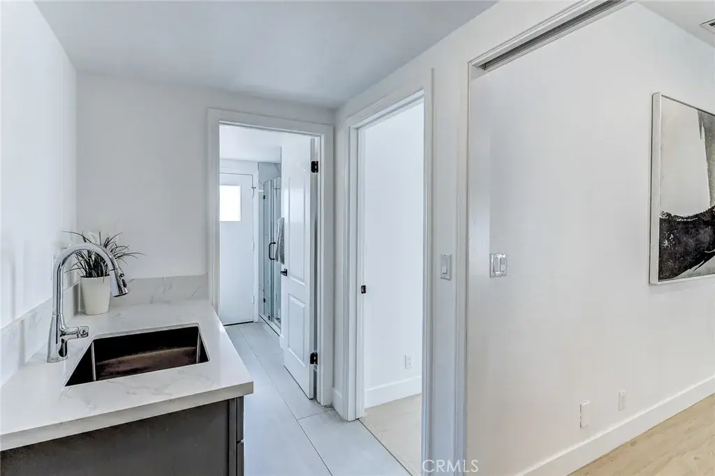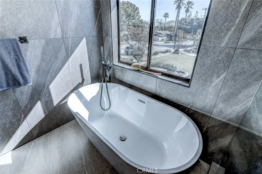 The step-down family room is rich in character, highlighted by a statement brick-mantled fireplace, a full wet bar, and an expansive sliding door that enhances the home’s indoor-outdoor lifestyle. A desirable downstairs bedroom suite offers privacy and flexibility, complete with yard access and serene mountain views. The adjacent three-quarter bath has been beautifully reimagined with quartz counters, designer cabinetry, and direct outdoor access—ideal for guests or future pool convenience. Ascending the modern glass-balustrade staircase, the primary suite serves as a true private retreat. Enjoy a covered balcony, dual custom closets with elegant Japanese koji-style doors, and a spa-inspired bath featuring a soaking tub, separate shower, dual vanities, and a state-of-the-art Japanese bidet toilet. Two additional upstairs bedrooms capture picturesque backyard and mountain vistas and share a tastefully remodeled bath appointed with a waterfall shower and premium finishes. The backyard is a tranquil sanctuary, thoughtfully landscaped and centered around an inviting in-ground hot tub. A detached structure with electricity offers endless possibilities whether envisioned as a private fitness studio, creative workspace, executive office, or refined retreat.