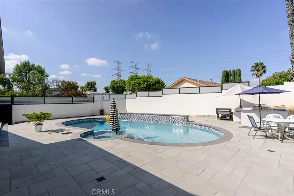 Once outside, you’ll discover a private resort-style oasis, where a sparkling pool and spa take center stage. An outdoor kitchen and full outdoor bathroom create the ultimate entertaining space, perfect for gatherings under the sun or starlit evenings.