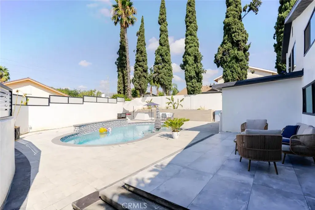 Every inch of this home has been completely renovated, showcasing new roof, flooring, plumbing, and electrical systems alongside high-end appliances, modern fixtures, and custom finishes. The main home’s open floor plan boasts marble countertops, recessed lighting throughout, and a beautiful fireplace, blending warmth with sophistication. A dedicated wine cellar elevates the entertaining experience, while the seamless indoor-outdoor flow sets the stage for California living at its finest.