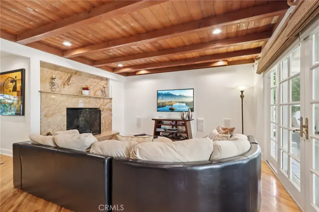 Charming Ranch-Style Retreat in the Heart of Old Granada Hills. Nestled in a picturesque Granada Hills neighborhood, this beautifully maintained single-story ranch home offers timeless character, thoughtful updates, and incredible potential. Situated on an expansive 14,927 sq ft lot, this 4-bedroom, 4-bath home spans 2,271 sq ft of inviting living space—perfect for entertaining, relaxing, or expanding your vision. Step inside to discover a light-filled kitchen adorned with granite countertops, travertine backsplash, stainless steel appliances, a built-in refrigerator, and a charming bay window. The spacious eat-in area flows effortlessly into a formal dining room, ideal for hosting family and friends. The warm and inviting living room is the heart of the home, featuring stunning wood-beamed ceilings, a classic marble fireplace, and elegant French doors that open to your private backyard escape. With four generously sized bedrooms, including two en suites, there’s room for everyone to unwind. The primary suite is a true sanctuary with a walk-in closet, French doors to the backyard, and a luxurious bath complete with a soaking tub and separate shower. A dedicated indoor laundry room adds modern convenience, while original details and tasteful upgrades preserve the home’s unique charm. Outside, the possibilities are endless. Entertain year-round under the expansive 660 sq ft L-shaped covered patio, enjoy cozy evenings around the gas firepit, or soak in the rock spa under the stars. The huge backyard is a blank canvas—whether you envision lush gardens, a pool, or a playground, there’s space for it all. Looking for more flexibility? The detached two-car garage, complete with an additional storage room or den, offers fantastic ADU or guesthouse potential. Located in the highly sought-after Granada Hills Charter High School district and just moments from the beloved Granada Hills Farmers Market, shops, and dining, this home combines comfort, character, and convenience in one incredible package. Don’t miss the opportunity to create your dream lifestyle in this one-of-a-kind Granada Hills gem!