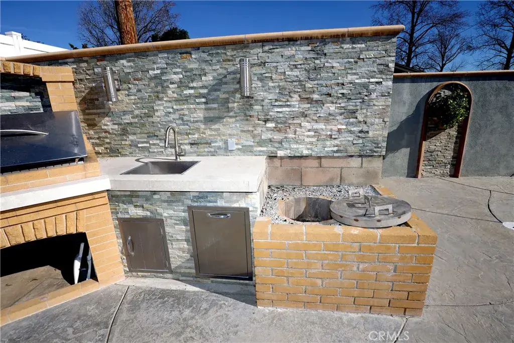 Step outside to a resort-style backyard featuring a heated swimming pool and a fully built-out outdoor kitchen with premium Lynx and Sedona gas and grill appliances, plus a tondir, creating the perfect setting for gatherings and outdoor dining.