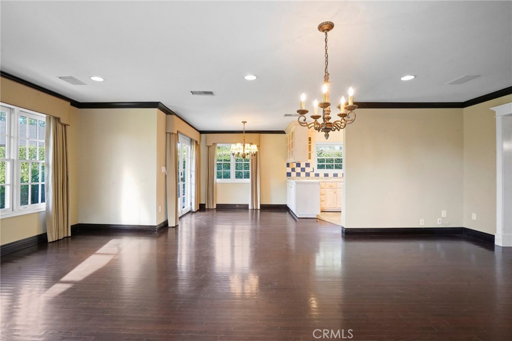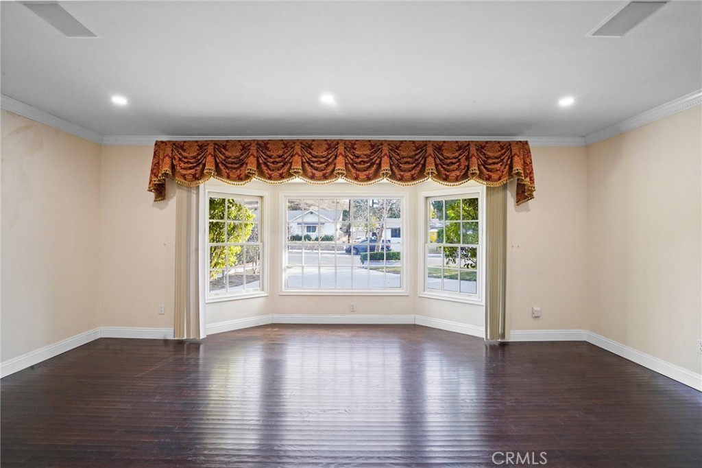 This stunning single-story home in Granada Hills offers the perfect blend of elegance and comfort. With 3 bedrooms and 2 baths, the home is set on an expansive 11,972 square-foot lot. Inside, the rich hardwood flooring flows seamlessly throughout, complementing the cozy ambiance created by the living room’s beautiful fireplace and mantel. The living room opens to a spacious family room, complete with a second fireplace and views of the lush green backyard and garden. Adjacent to the family room is the bright and functional kitchen, featuring ample cabinetry with charming see-through glass doors, built-in appliances, a double oven, and a microwave. A generous dining area perfect for gatherings. The primary bedroom boasts his-and-her closets with built-ins and an ensuite bath with dual sinks, offering both style and convenience. Two additional bedrooms share a full hallway bath, making this home ideal for families or guests. A laundry area inside the home, equipped with a washer and dryer, adds to the convenience. Outside, the expansive backyard, providing plenty of outdoor space for relaxation and entertainment includes a large storage shed for tools, gardening equipment, or extra storage.