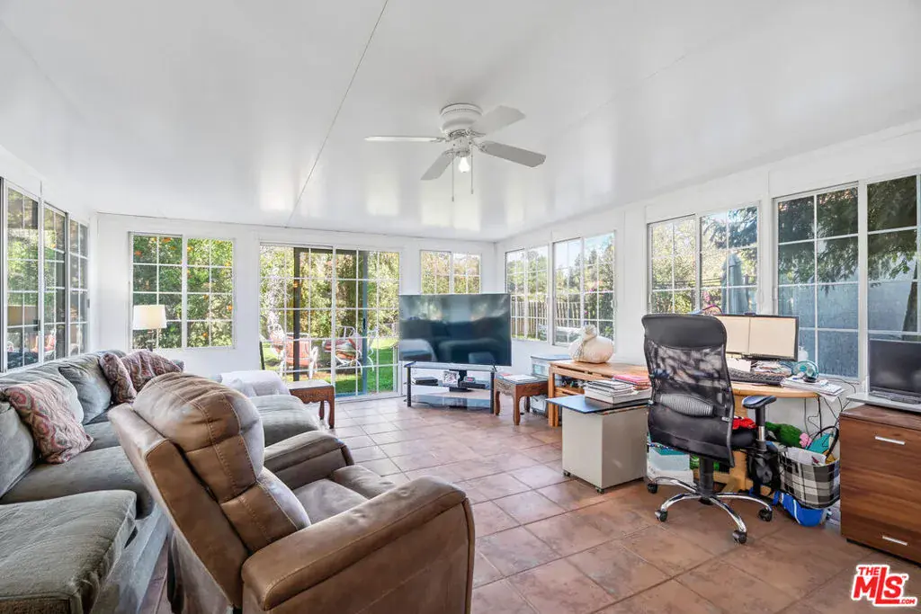 Known affectionately by neighbors as “The Yosemite House” for its majestic Redwood standing sentry over the birds of paradise and shaded azaleas in the front yard, this single-story gem offers a lifestyle of quiet prestige nestled in the picturesque North of Rinaldi neighborhood of Granada Hills. Recently enhanced with a complete exterior repaint, the residence provides a seamless blend of refined comfort and extraordinary potential. The expansive floor plan is anchored by rich hardwood floors and a striking dual-sided fireplace. The kitchen/dining area is bathed in light from a charming bay-windowed breakfast nook and elegant French doors which seamlessly bridges the gap between indoor comfort and outdoor beauty. Retreat to the large, primary suite, which boasts a recent bathroom remodel complete with marble countertops, ceramic flooring, oversized soaking tub, and a sleek walk-in shower. With two of the four bedrooms featuring en-suite bathrooms, the layout is as functional as it is inviting. The true magic of this residence is revealed as you cross yet another set of French doors through the sun-drenched lanai and into the enchanting backyard. The grounds slope gently toward a city-maintained arroyo, bordering the lush, manicured fairways of the Knollwood Country Club. This natural buffer ensures complete rear privacy while framing breathtaking, panoramic views of the Santa Susana Mountains. This private sanctuary is home to a vibrant ecosystem of blood orange and Valencia trees, fragrant wisteria, towering Mexican fan palms, as well as Eucalyptus, Cypress and Redwoods where owls and hummingbirds are frequent guests, while a whimsical bougainvillea enclosure serves as a refuge for local bunnies. Tucked into the landscape lies a charming, custom-built, and recently repainted miniature playhouse, equipped with electricity, and with a bit of TLC, can be the perfect footprint for a creative studio. Whether you envision a custom pool, a modern ADU, or an elite entertaining space, this +/- 12,980 SF canvas offers a rare opportunity to customize your dream oasis. Positioned just minutes from the trails of O’Melveny Park and the area’s top-tier, high-ranking schools, this is a unique opportunity to secure long-term value in one of the Valley’s most sought-after pockets.