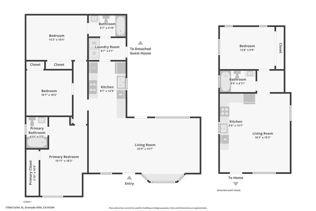 Incredible opportunity to own this Granada Hills gated property with newly remodeled 1 bedroom and 1 bath room guest home with possible ADU conversion. Main home features 3 bedrooms and 2 baths, large living room, updated kitchen, dual pane windows and much more. Located in the Granada Hills Charter zone. The guest house features approximately 550 sqft of living space with a brand new kitchen and a brand new full bath. Located in a desirable quiet neighborhood just minutes to the freeways, all shopping & dining.