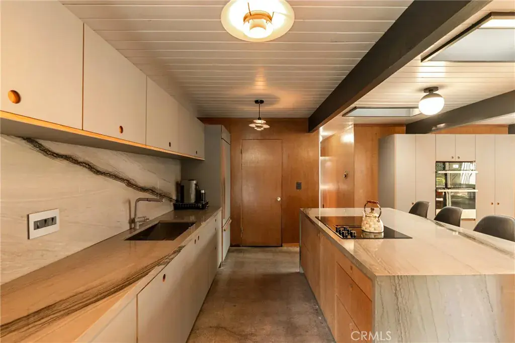 Welcome to 17136 Nanette Street, a beautifully reimagined Eichler residence nestled in the heart of iconic Granada Hills. This rare mid-century gem seamlessly blends classic architectural integrity with modern upgrades, offering five bedrooms and three bathrooms designed for both effortless living and inspired entertaining. True to Eichler design, the home is filled with natural light and an inviting sense of indoor-outdoor flow. Clean lines, open living spaces, and thoughtful updates create a harmonious balance of form and function. The private backyard is a true sanctuary—featuring a sparkling pool framed by lush, mature trees that provide privacy, shade, and a serene, resort-like atmosphere. Whether hosting gatherings or enjoying quiet moments at home, the expansive outdoor space invites year-round enjoyment. Set in one of Granada Hills’ most desirable neighborhoods, this property offers the perfect blend of architectural significance, comfort, and Southern California lifestyle living. A rare opportunity to own a remodeled Eichler in a premier location—this is Granada Hills living at its finest.
