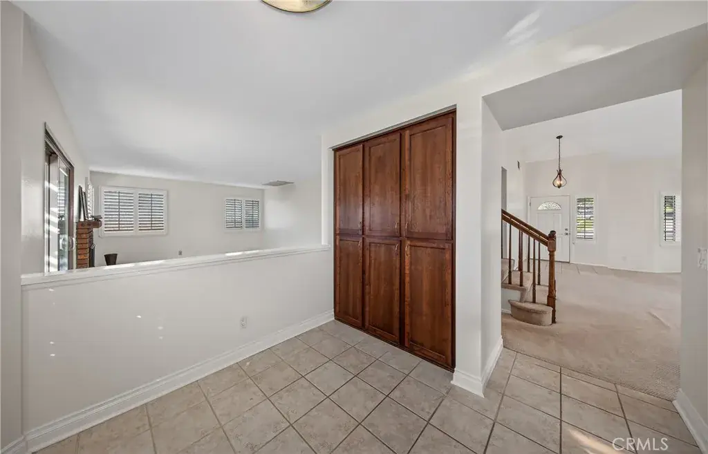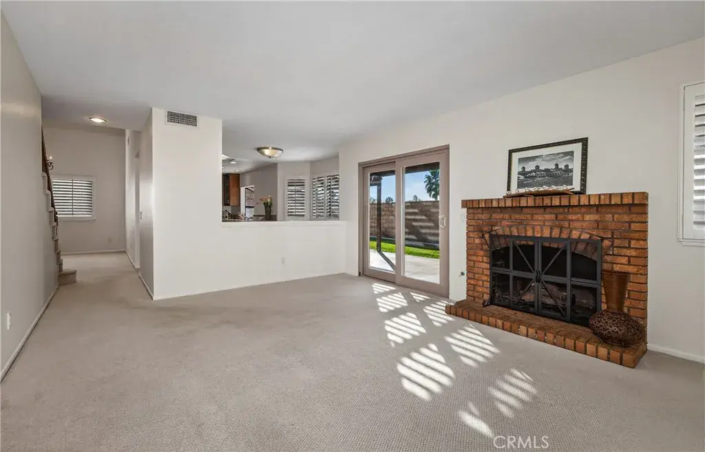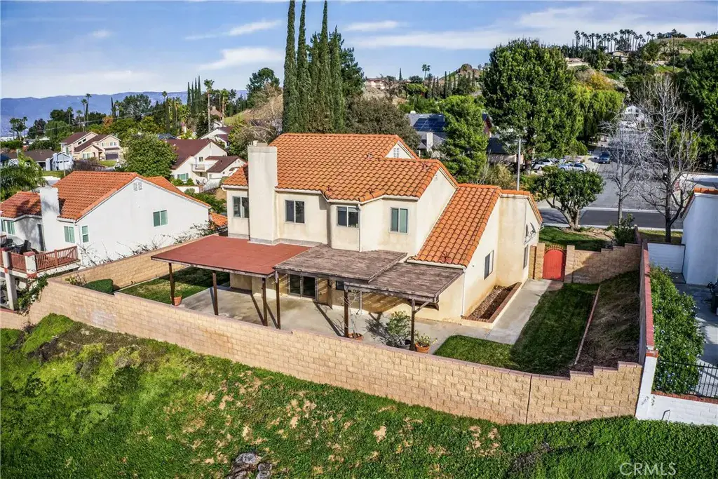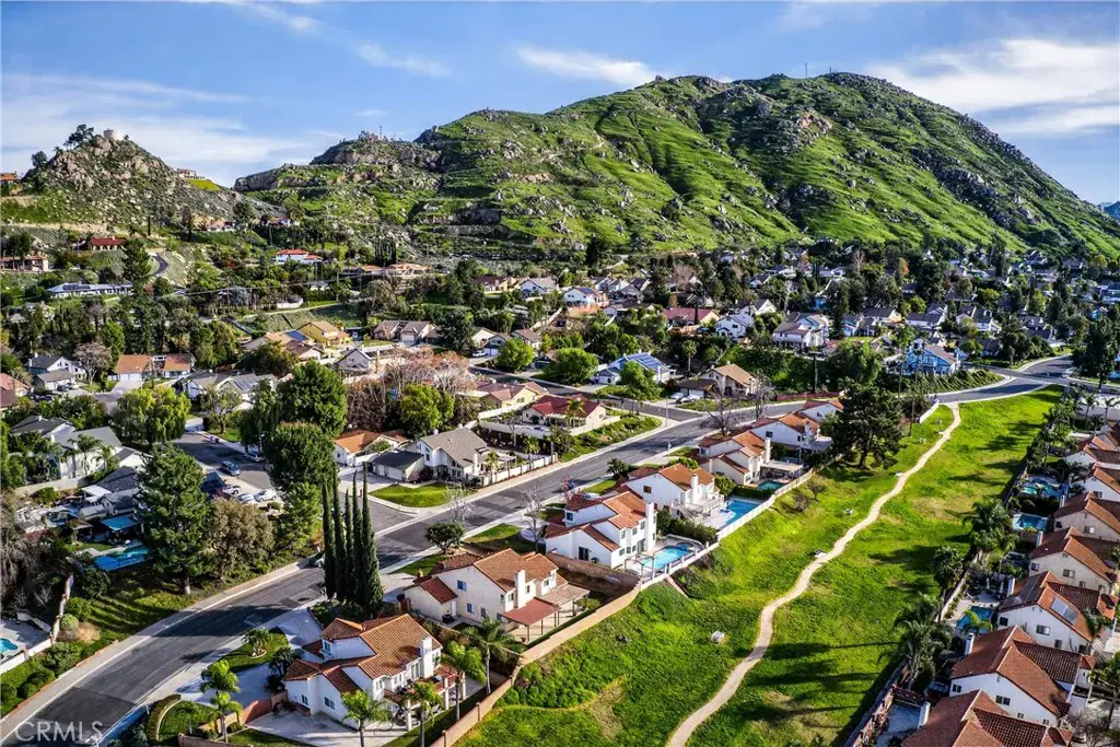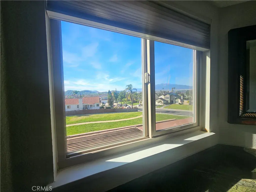 View Home Backing to City-Owned Greenbelt! Enjoy privacy and serene views as this beautiful home backs directly to a greenbelt maintained and owned by the City of Grand Terrace. Offering 4 bedrooms and 3 bathrooms, the thoughtfully designed floor plan includes a downstairs bedroom with mirrored wardrobe doors and a full bath featuring a single sink vanity that is separate from a walk-in shower & commode—ideal for guests or multigenerational living. The entry opens to a formal living and dining area with vaulted ceilings, creating a light and airy first impression. Wood window shutters accent many windows throughout the home. The updated kitchen features stainless steel appliances, a garden window, and an adjoining breakfast nook that overlooks the family room with fireplace and sliding glass door to a covered patio, perfect for indoor-outdoor entertaining. Upstairs you’ll find three spacious bedrooms, all with walk-in closets. The primary suite showcases vaulted ceilings, two walk-in closets, and beautiful views. The updated primary bath includes a dual-sink vanity with a central window, oval soaking tub, separate shower, and tile flooring. The upstairs hall bath offers a single-sink vanity and shower-over-tub. Additional highlights include indoor laundry, a 3-car garage, block wall fencing surrounding the property, and views from multiple rooms throughout the home.