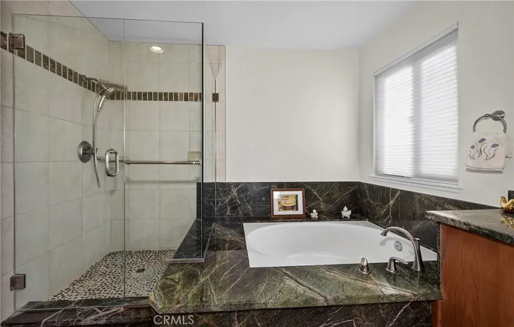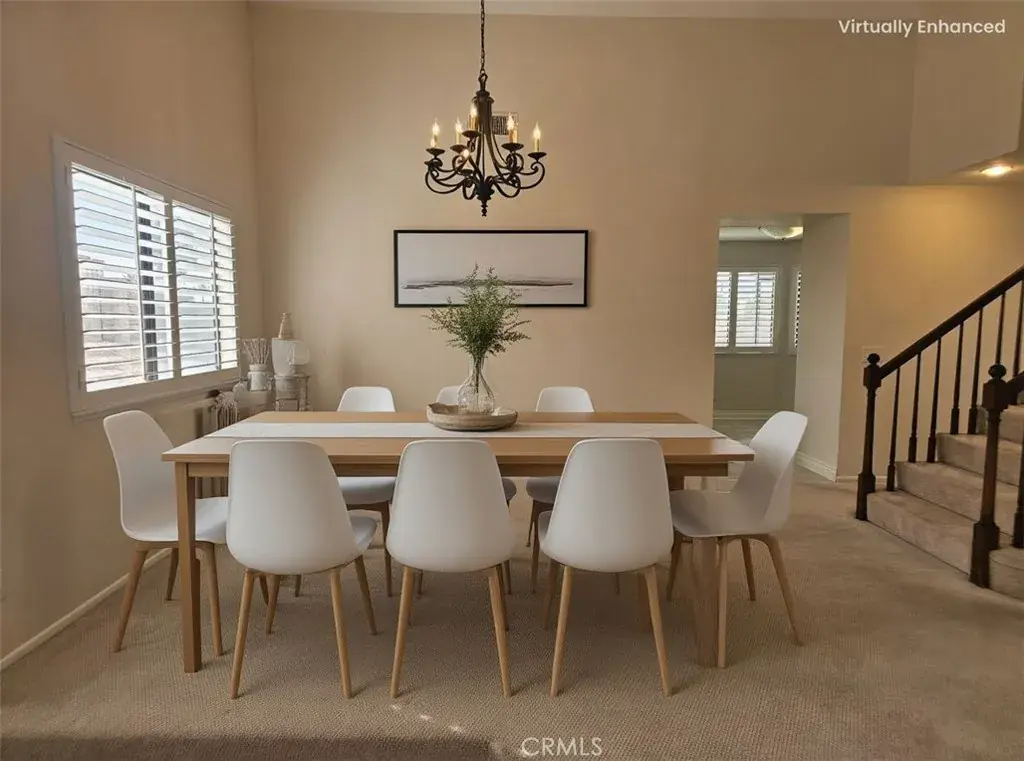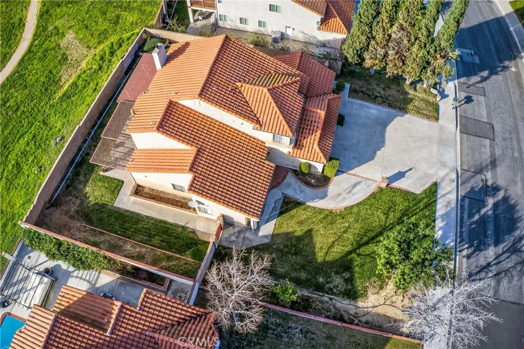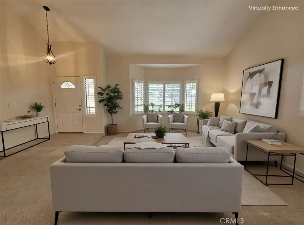 View Home Backing to City-Owned Greenbelt! Enjoy privacy and serene views as this beautiful home backs directly to a greenbelt maintained and owned by the City of Grand Terrace. Offering 4 bedrooms and 3 bathrooms, the thoughtfully designed floor plan includes a downstairs bedroom with mirrored wardrobe doors and a full bath featuring a single sink vanity that is separate from a walk-in shower & commode—ideal for guests or multigenerational living. The entry opens to a formal living and dining area with vaulted ceilings, creating a light and airy first impression. Wood window shutters accent many windows throughout the home. The updated kitchen features stainless steel appliances, a garden window, and an adjoining breakfast nook that overlooks the family room with fireplace and sliding glass door to a covered patio, perfect for indoor-outdoor entertaining. Upstairs you’ll find three spacious bedrooms, all with walk-in closets. The primary suite showcases vaulted ceilings, two walk-in closets, and beautiful views. The updated primary bath includes a dual-sink vanity with a central window, oval soaking tub, separate shower, and tile flooring. The upstairs hall bath offers a single-sink vanity and shower-over-tub. Additional highlights include indoor laundry, a 3-car garage, block wall fencing surrounding the property, and views from multiple rooms throughout the home.