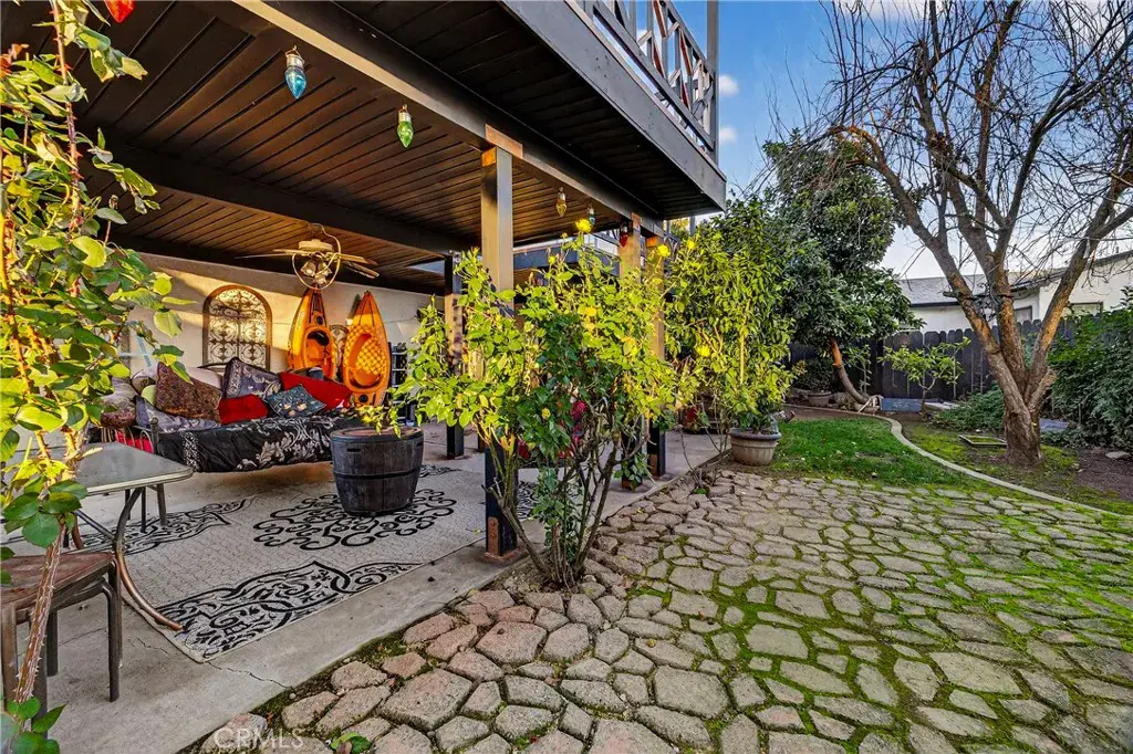 One of the property’s most treasured features is its exceptional outdoor space, designed as a private sanctuary. Mature fruit trees and vines create a landscape that evolves with the seasons, including Meyer lemon, grapefruit, avocado, key lime, plum, cherry, pear, peaches, and grapevines. Evergreen trees and flowering accents—decorative pears, white and pink dogwoods, and a striking red Japanese maple—add year-round beauty. Multiple outdoor areas, from covered patios to a shaded side yard, offer ideal spaces for gardening, dining, or quiet relaxation.