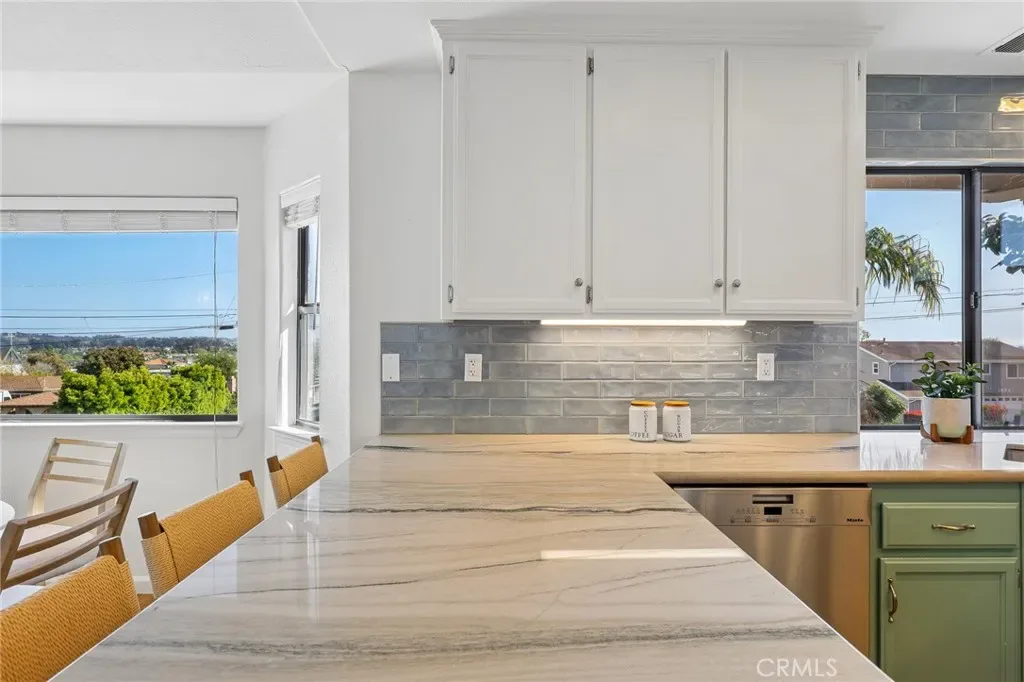 Light, bright, and beautifully remodeled with ocean and dune views! This 3 bedroom, 2.5 bathroom home offers an open, airy floor plan with new luxury plank vinyl flooring, hand-selected Pacific Shore quartzite countertops, a custom backsplash, beachy light fixtures, and new stainless steel appliances. The upstairs living space is filled with natural light and opens to a private balcony, perfect for morning coffee or sunset views. The over-sized primary suite includes built-ins, a large walk-in closet, and a beautifully updated bathroom with dual vanities, and a glass enclosed shower. Two bedrooms and a full bathroom are located downstairs, offering flexibility for guests or family. All bathrooms have been thoughtfully updated. The front and backyard feature thoughtfully designed drought tolerant landscaping, creating a clean, inviting outdoor space that’s both attractive and easy to enjoy. Additional features include a two-car garage, indoor laundry, new water heater, and all appliances included. Located just minutes from the beach, parks, shopping, and restaurants, this is Central Coast living at its best!