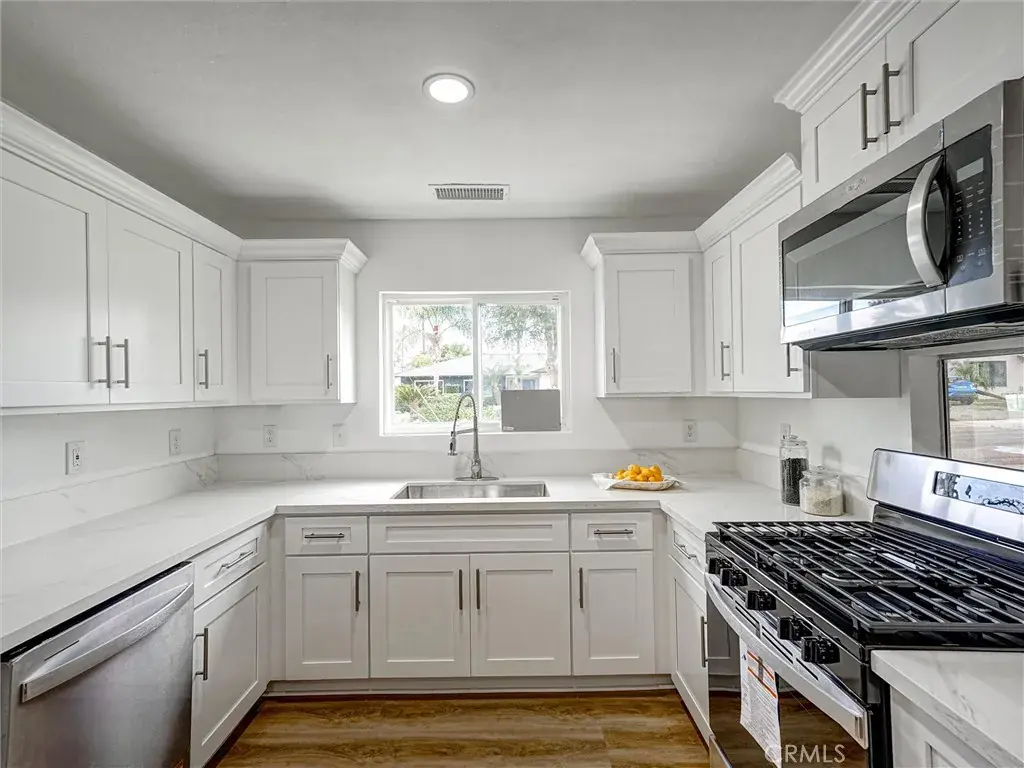 Beautifully remodeled 3-bedroom, 2-bathroom residence located on a quiet cul-de-sac. This home features an open and inviting layout with new laminate flooring throughout. The remodeled kitchen offers new cabinets, quartz countertops, and new stainless steel appliances. Both bathrooms have been tastefully updated. The bedrooms include new mirrored closet doors and recessed lighting throughout home. It also includes an atrium that provides extra lighting.