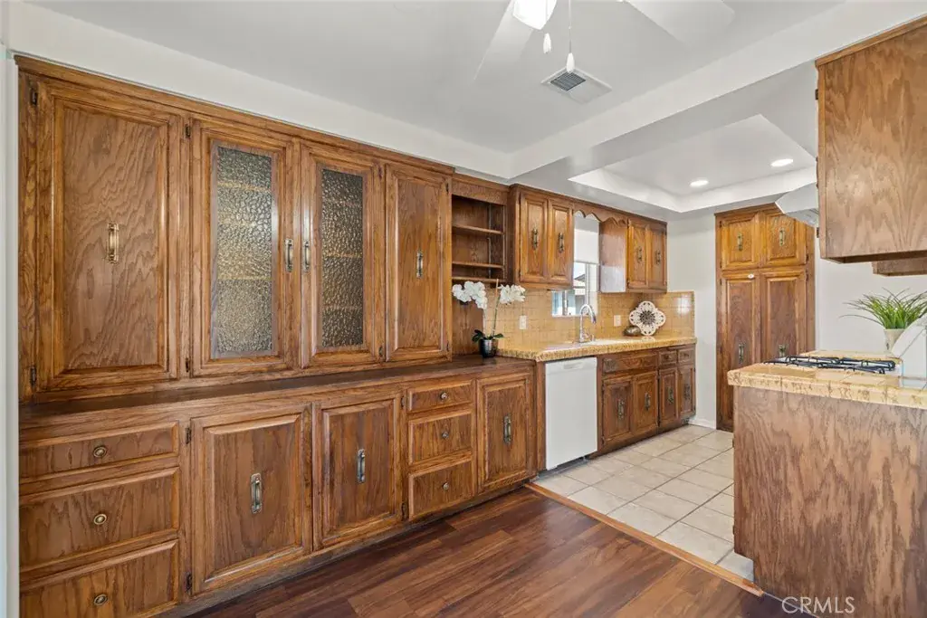 Step inside to find fresh interior paint throughout, including the garage, along with easy-maintenance wood and tile flooring. The bright living room features newly installed recessed lighting, creating a warm and inviting atmosphere. The kitchen offers extended cabinetry for extra storage and a newer dishwasher, making everyday living effortless.