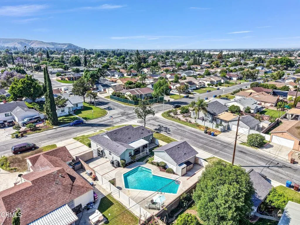 Experience California living in this exceptional corner-lot residence, gracefully positioned on an expansive parcel with breathtaking views of the San Gabriel Mountains. Thoughtfully designed and beautifully appointed, this 3-bedroom, 2-bathroom home offers a seamless blend of comfort, elegance, and indoor-outdoor living.The interior is filled with natural lighting through large panel doors that create an open ambiance. The homes functional layout includes a primary suite complete with its own full bathroom. The kitchen features sleek granite countertops and flows effortlessly into the main living space, ideal for both everyday living and entertaining. A dedicated indoor laundry room, complete with washer and dryer, adds convenience without compromising style.Step outside to an expansive backyard showcasing a stunning pool, complemented by a fenced patio perfect for intimate gatherings or tranquil relaxation. The generous lot offers exceptional versatility, including potential for an ADU conversion via the existing garage, presenting an opportunity for multigenerational living or additional income.Ample parking accommodations include a garage, two separate driveways (one for possible RV parking), and plentiful street parking–an uncommon luxury. With its prime corner location, captivating views, and resort-style amenities, this home represents a rare opportunity to enjoy elevated living in a truly desirable setting.