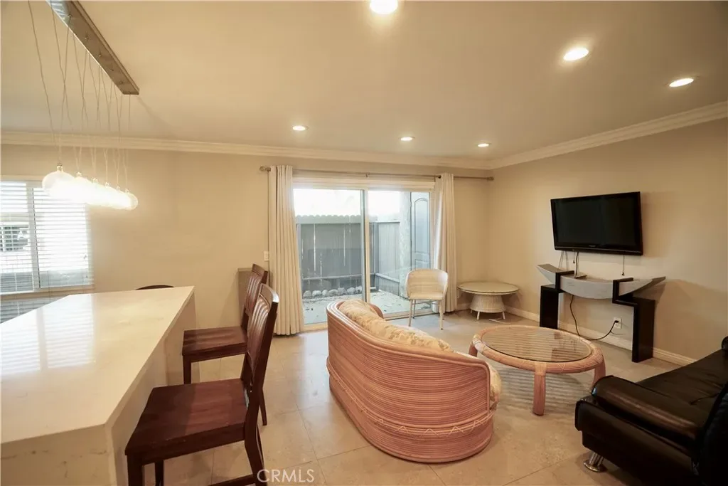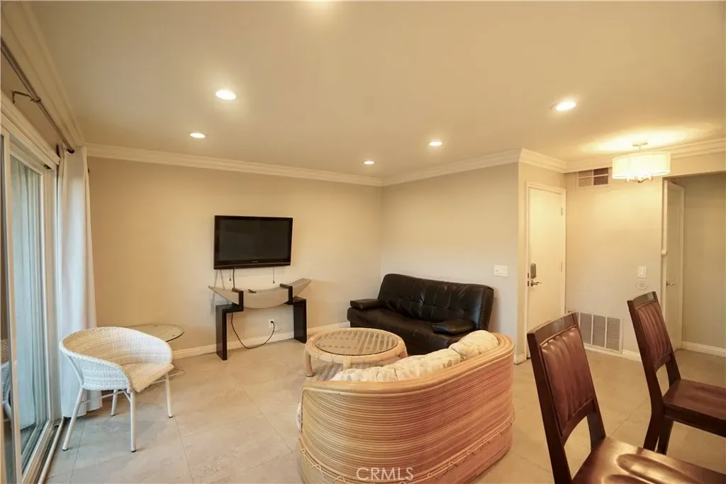 Cozy 1 story downstairs condo with 1 bedrooms / 1 bath / 1 parking carport; Built in 1979; Open & airy floor plan; Remodel functional kitchen with quartz counter & center island; Remodel bath; Double panels windows & sliding door; Newer laminate & tile floor; Refrigerator, TV, Living Room Set, Dining Room Set, Bedroom Set are included; Gated community with security guard; Schools, shopping plaza, restaurants, markets, bus stops, parks, doctors clinic w/ urgent care, hotel, mall, movie theaters, balling alley are nearby, Easy access to 60 freeway, Azusa Ave. exit.