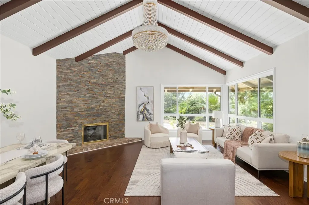 Charming single-story home on a generous approx. 14,586 sq. ft. lot in desirable Hacienda Heights. Originally a 4-bedroom home, it has been reconfigured into 3 bedrooms and 3 bathrooms to enhance space and functionality. Features include a spacious living room with soaring ceilings and fireplace, wood flooring throughout, and a bright kitchen with breakfast nook and separate laundry room. Property includes a bonus structure (approx. 400 sqft) with a bathroom and an enclosed patio (approx. 300 sqft), offering flexible space for extended family or home office. These areas were built without permits and are not included in the reported square footage. Buyer to verify. Expansive backyard with mountain views and great potential. Conveniently located near parks, shopping, and the Hacienda Heights Library.