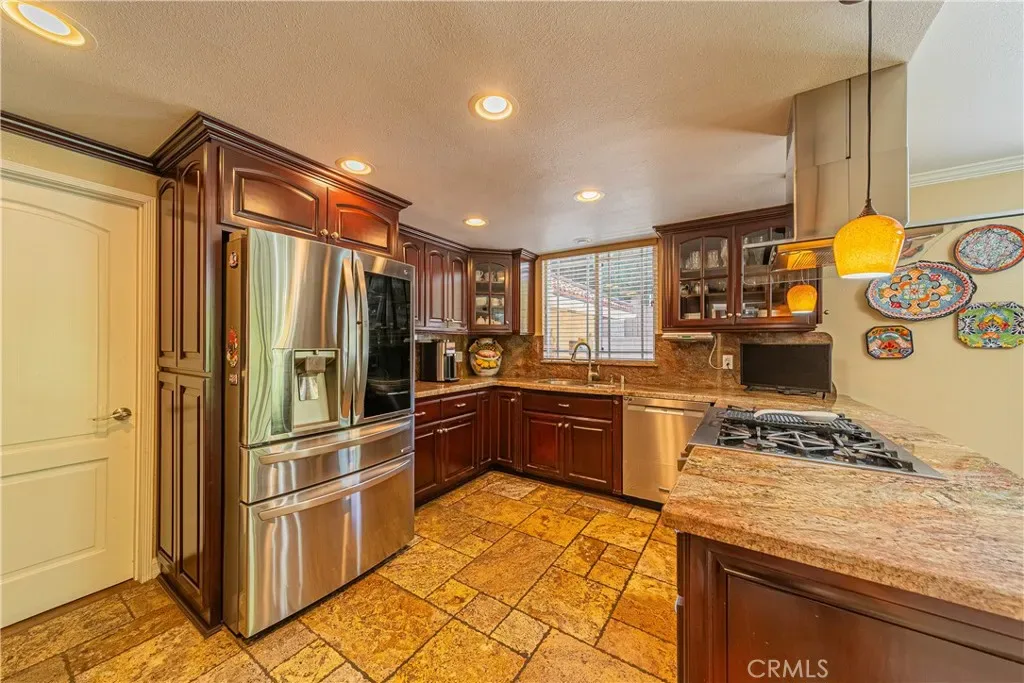 Resort-style backyard features a pool and heated spa, built-in BBQ, and covered patio—perfect for year-round enjoyment. Large driveway with RV/boat parking and an oversized 3-car garage.