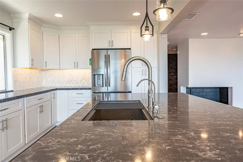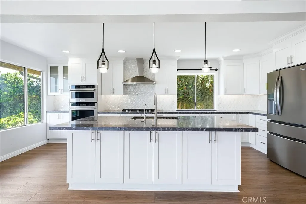 The beautifully renovated kitchen is a chef’s delight, complete with a breakfast nook that overlooks the backyard and sweeping views—making every meal feel elevated.