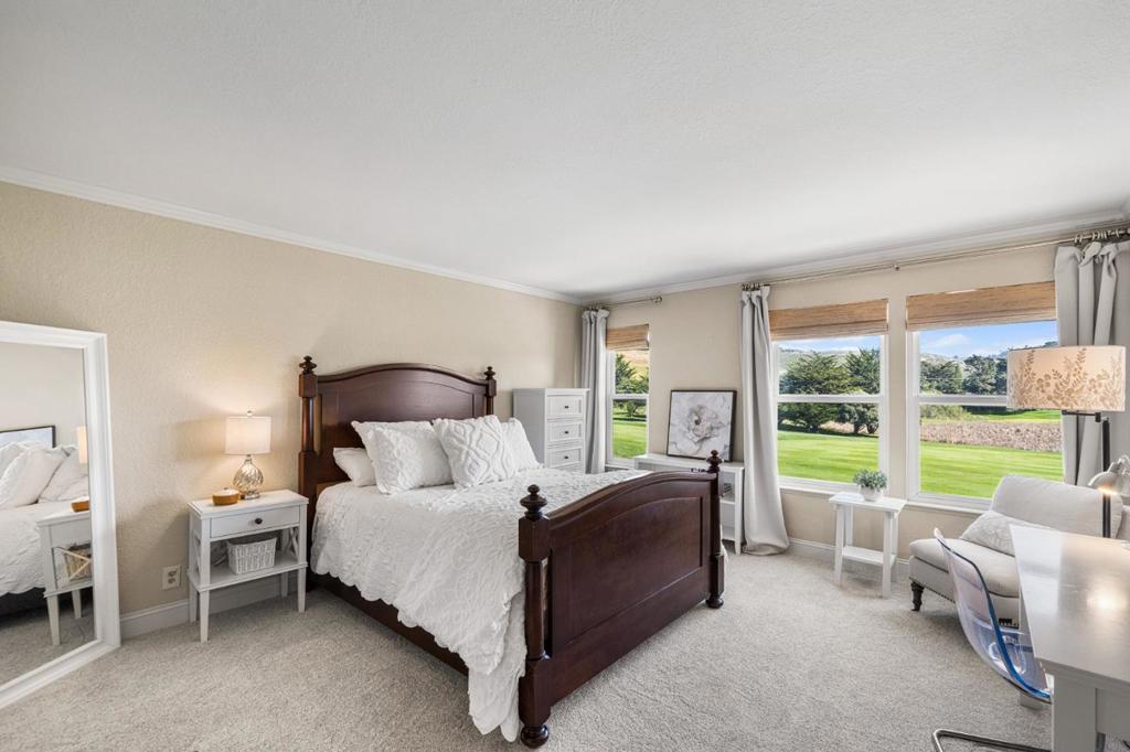Poised on one of Ocean Colony’s largest lots overlooking the 12th fairway, this Colonial masterpiece blends coastal elegance with timeless sophistication. Situated on a quiet cul-de-sac, the stately facade and grand circular drive create a stunning first impression. Sun-drenched interiors, with east/west exposure, feature new flooring, picture windows with hill and golf course views, and French doors for seamless indoor-outdoor flow. Chef’s kitchen is an epicurean dream with marble counters, massive island, Wolf/Sub-Zero appliances, and walk-in pantry. For the host, a formal dining room boasts 300-bottle wine storage and wet bar, 3 large patios and built-in BBQ island. The home offers a grand living room plus two family rooms for ultimate flexibility. Upstairs, four en-suite bedrooms include a primary retreat with panoramic views, spa-inspired bath with steam shower, soaking tub & custom closet. “Secret” finished attic is a sky-lit sanctuary, studio or playroom. Future-ready with Tesla Powerwall and solar panels. A rare legacy property in Northern Californias premier coastal enclave.