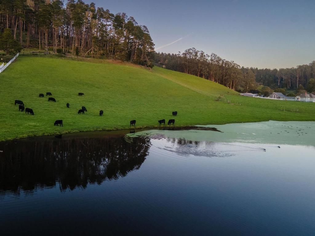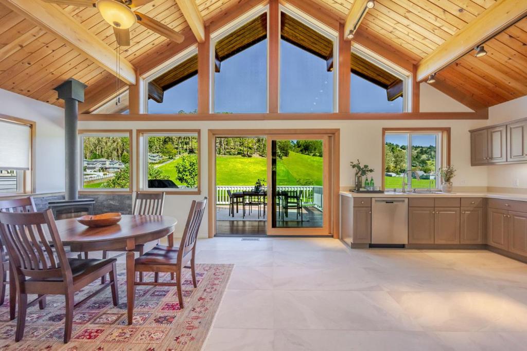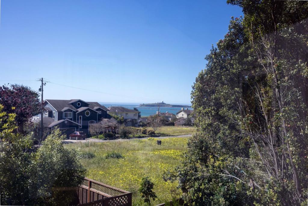 Sun-filled East Miramar home with panoramic views in both directions – unobstructed ocean and Pillar Point Harbor vistas to the west, and rolling pasturelands and Quarry Park to the east. Expansive windows and vaulted ceilings flood the upper level with natural light, framing sailboats returning to port and twinkling harbor lights after sunset. A second-story composite deck off the kitchen and dining area overlooks open pasture and forest – perfect for BBQs, al fresco dining, or relaxing in the sun. The reverse floor plan places main living areas upstairs for maximum impact, while the lower level offers a cool, restful bedroom retreat. The primary suite enjoys ocean breezes and distant wave sounds, with a custom bath featuring radiant heated floors. Brazilian walnut and porcelain slate flooring add warmth and texture. Many appliances are recently updated. Custom bird-safe glass enhances safety and sustainability. 4+ parking spaces offer flexibility for guests, a boat, or RV. Ideally located in East Miramar, blending peaceful rural surroundings with easy access to downtown Half Moon Bay, Quarry Park trails, Miramar Beach, Surfers Beach, Pillar Point Harbor dining and entertainment, plus a convenient commute to SF and the Peninsula. This is coastal living without compromise.