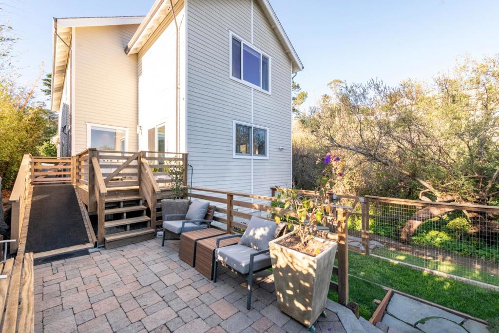 Meticulous craftsmanship and thoughtful design define this ideally located East Miramar gem just minutes from downtown Half Moon Bay, scenic beaches, and Pillar Point Harbor’s dining and entertainment. Privately nestled in a park-like coastal setting, this home welcomes you with abundant natural light, soaring ceilings, and a seamless flow between living spaces. The upgraded chef’s kitchen features quartz counters, a stainless steel and maple Boos block movable island, a walk-in pantry, and panoramic windows that frame tranquil garden and open-space views. A dramatic quartz fireplace connects the living and dining rooms, complemented by custom built-in shelving for a sophisticated touch. Upstairs, the spacious primary suite offers distant ocean views, a walk-in closet, custom cabinetry, and a luxurious ensuite bath with a large tiled shower and soaking tub. Two additional bedrooms, each privately situated with no shared walls, share a full bath and a conveniently located laundry room. The 4th bedroom is currently used as the laundry room, but can be converted back into a small bedroom. Enjoy the coastal lifestyle outdoors with a private patio and landscaped yard, perfect for relaxing or entertaining in a parklike setting.
