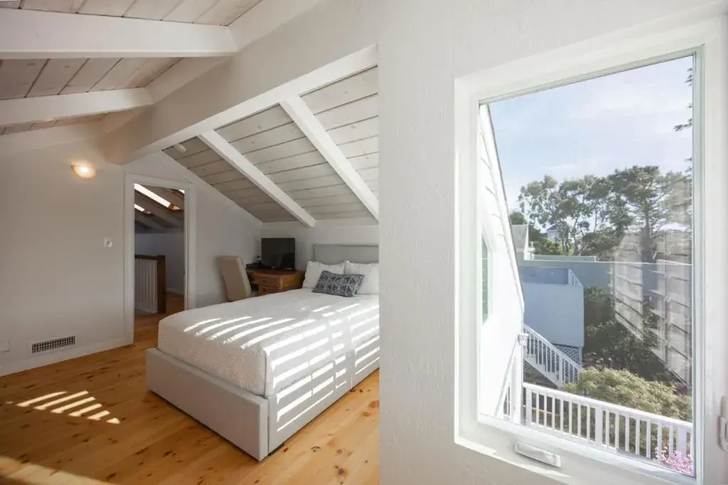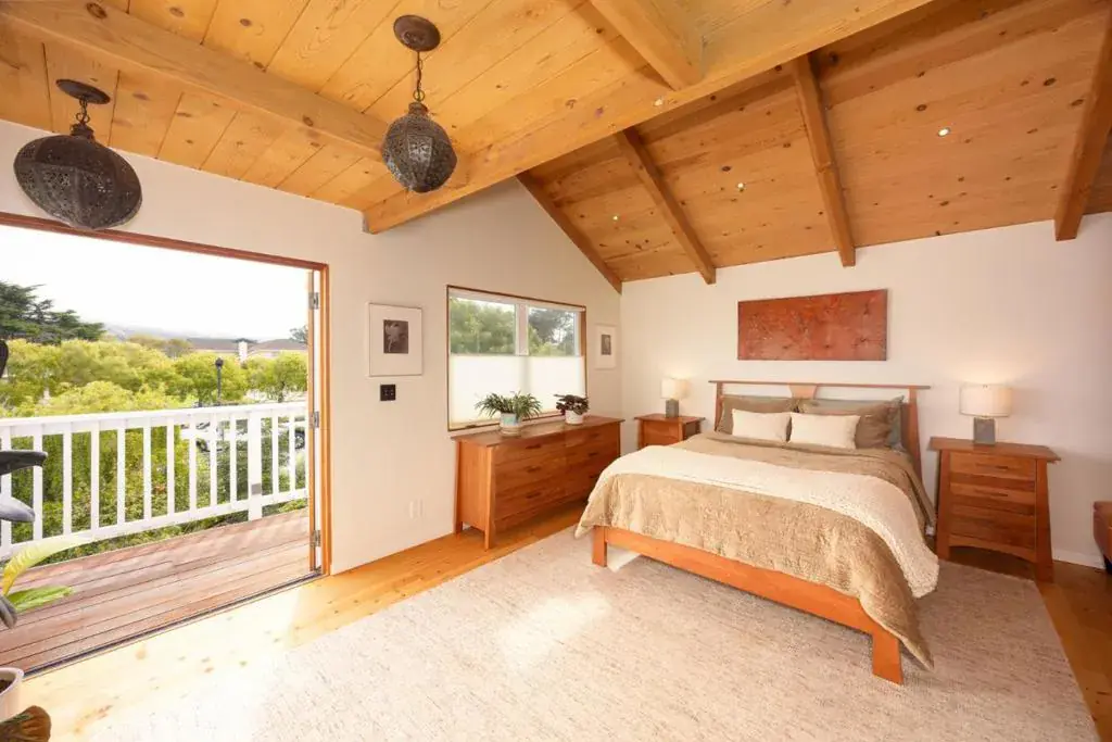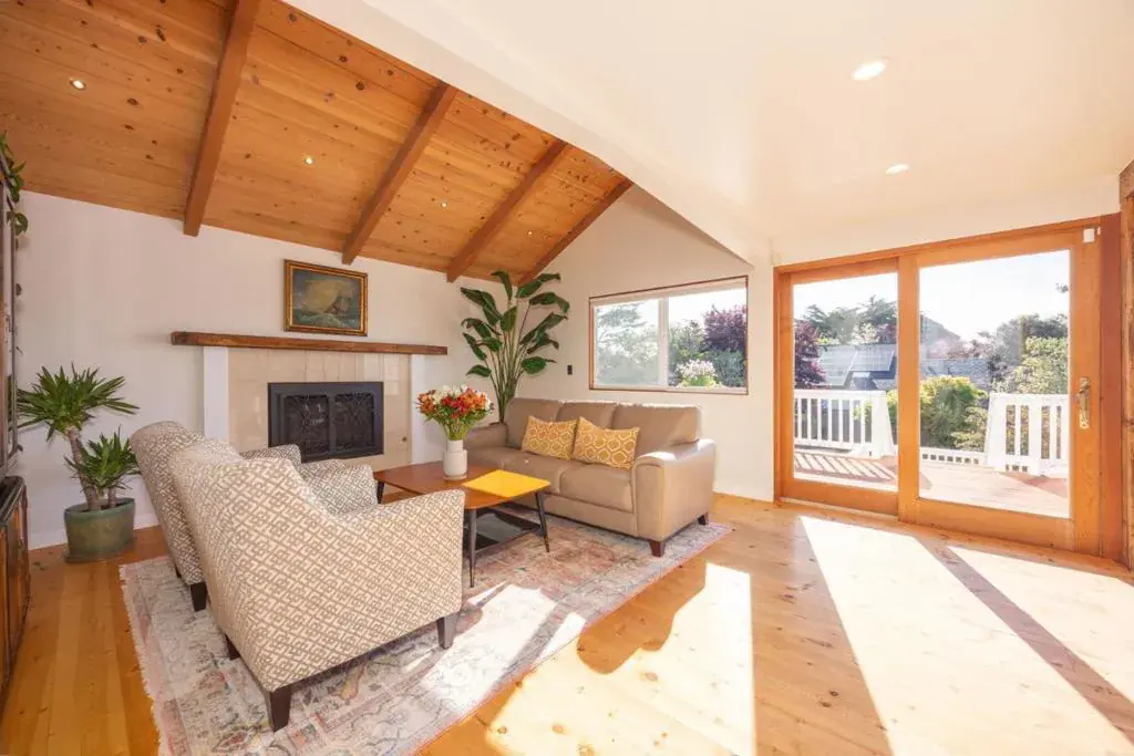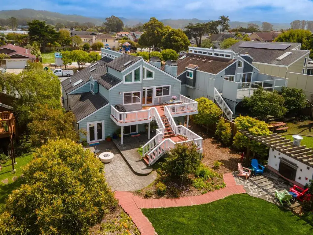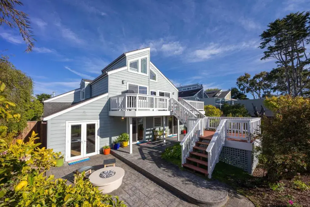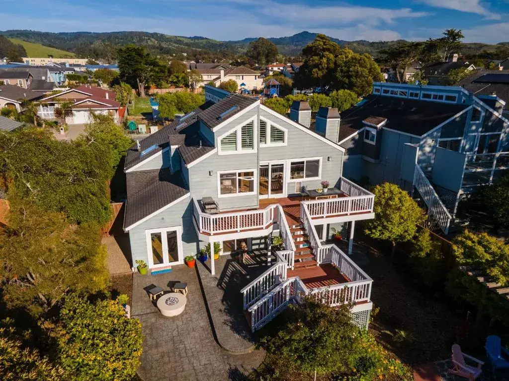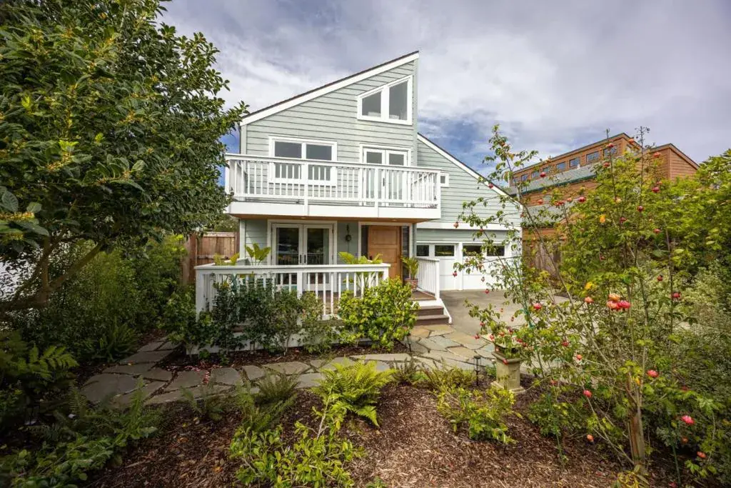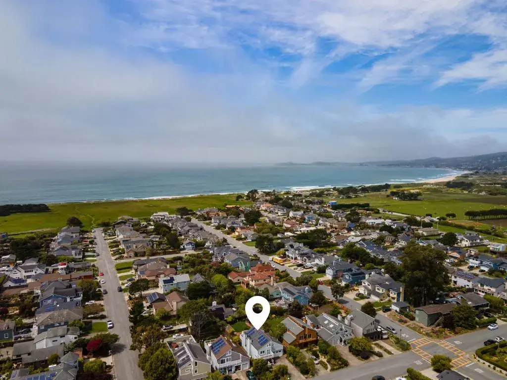 Welcome to coastal living in the sought-after Alsace Lorraine neighborhood. This industrial/boutique-style home greets with lush landscaping, bluestone pavers, and a private front porch. Inside, the spacious great room features exposed pine beam ceilings, built-in bookcases, and welcoming fireplace, perfect for cozy gatherings. Two full-size bedrooms and a full bath complete the first floor. Upstairs, a soaring pine-clad living room with second fireplace flows into the modern chef’s kitchen, where high-end appliances, stainless-steel countertops, and custom cabinetry set the stage for effortless entertaining. Choose from banquet seating, bar stools at the peninsula, or dine al fresco on the spacious deck. The primary suite impresses with antique barn doors, a chandelier-lit bath, and extensive custom closets. The 3rd floor loft offers a sunlit gallery and a newly permitted 4th bedroom with an ocean view. Step onto the deck overlooking a private backyard retreat with an outdoor fireplace, greenhouse, and fruit trees, including lemon, pear, apple, and mandarin. An artist studio/workshop sits off the attached two-car garage. Owned solar. Just a short walk to the beach and Main Street, with easy access to Hwy 1 & 92. A rare find in one of Half Moon Bay’s most desirable communities!