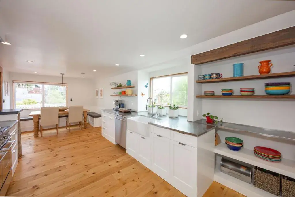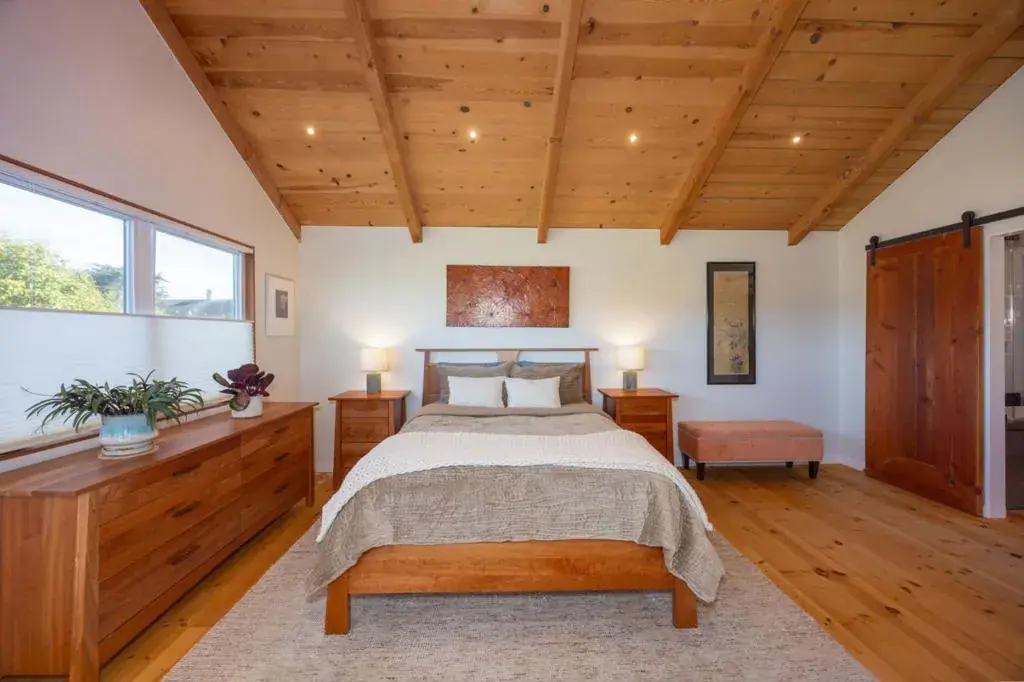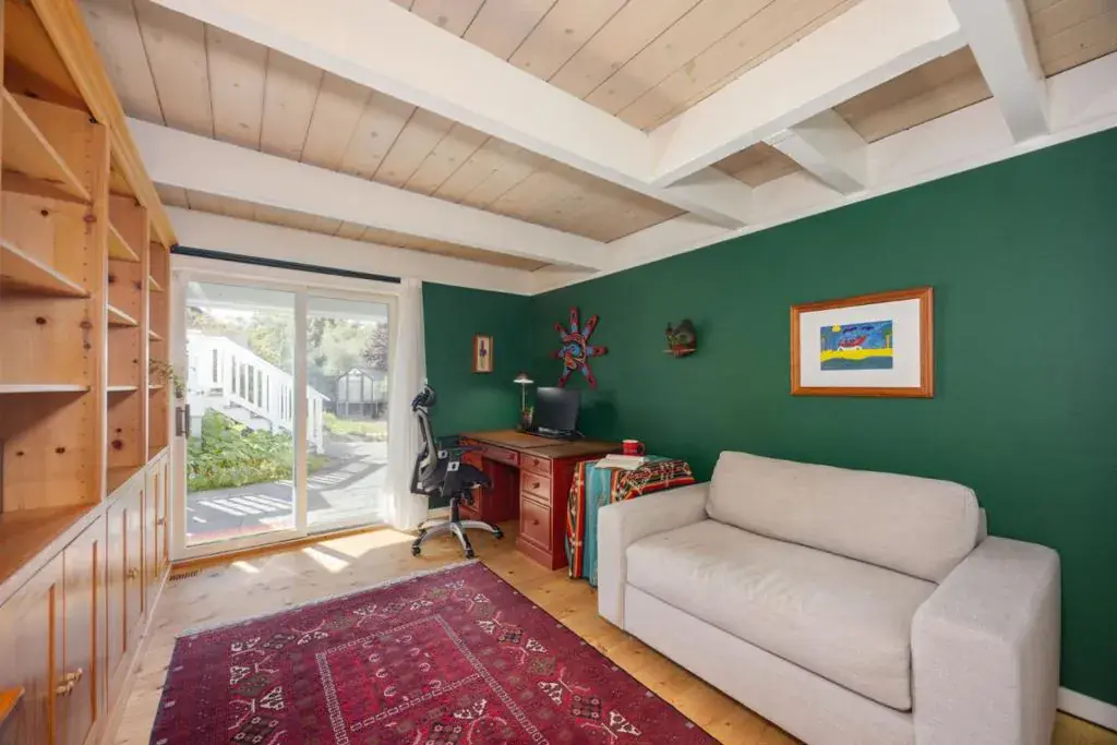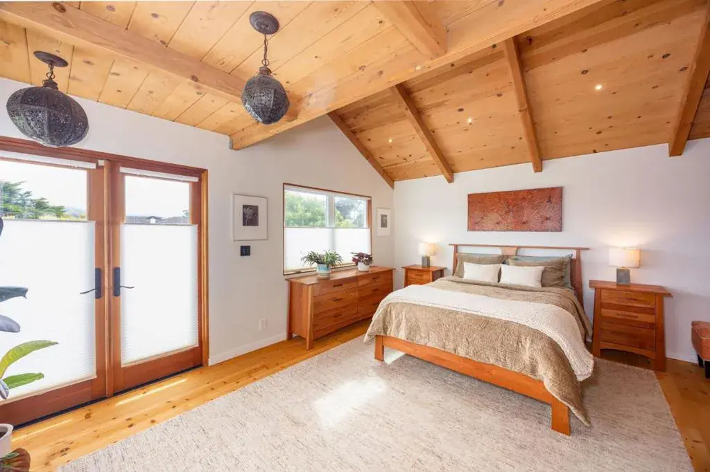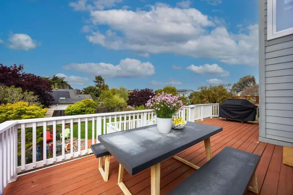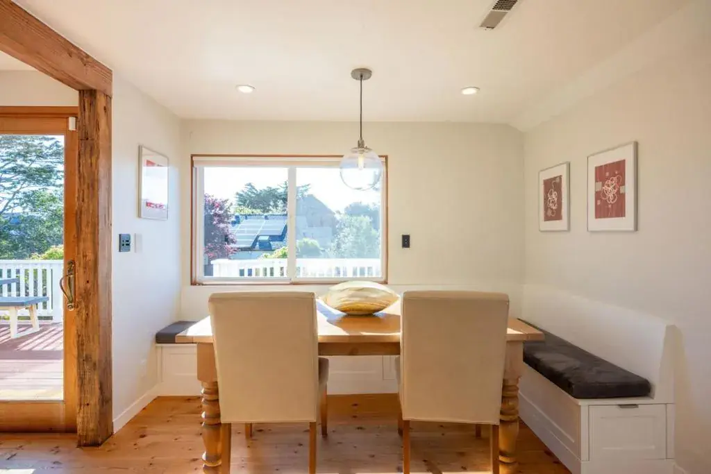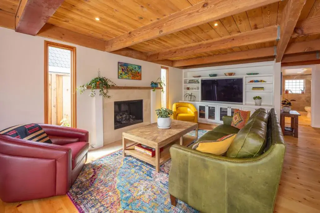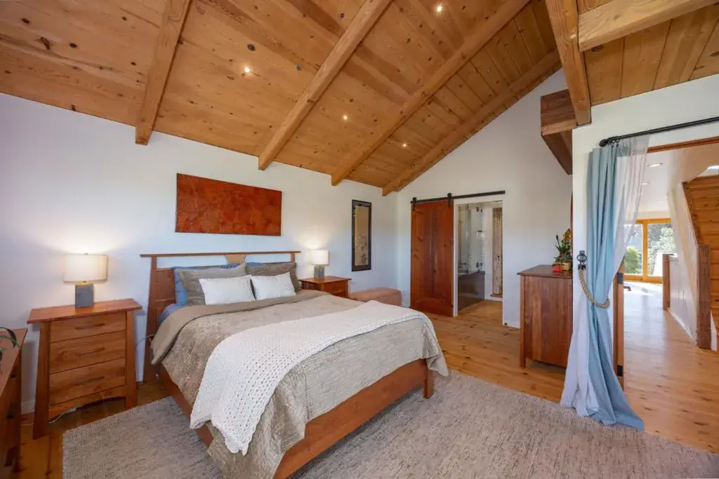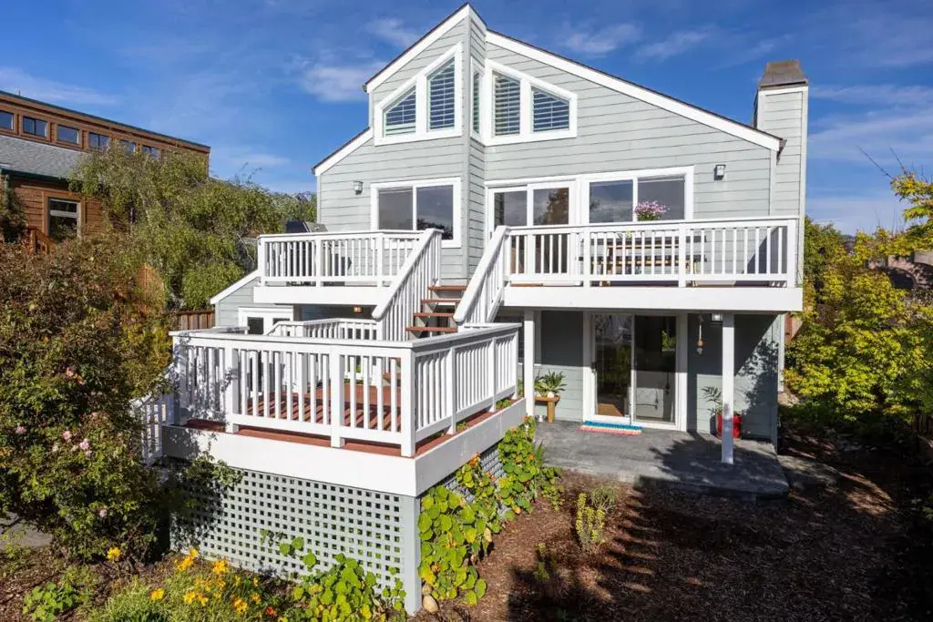 Welcome to coastal living in the sought-after Alsace Lorraine neighborhood. This industrial/boutique-style home greets with lush landscaping, bluestone pavers, and a private front porch. Inside, the spacious great room features exposed pine beam ceilings, built-in bookcases, and welcoming fireplace, perfect for cozy gatherings. Two full-size bedrooms and a full bath complete the first floor. Upstairs, a soaring pine-clad living room with second fireplace flows into the modern chef’s kitchen, where high-end appliances, stainless-steel countertops, and custom cabinetry set the stage for effortless entertaining. Choose from banquet seating, bar stools at the peninsula, or dine al fresco on the spacious deck. The primary suite impresses with antique barn doors, a chandelier-lit bath, and extensive custom closets. The 3rd floor loft offers a sunlit gallery and a newly permitted 4th bedroom with an ocean view. Step onto the deck overlooking a private backyard retreat with an outdoor fireplace, greenhouse, and fruit trees, including lemon, pear, apple, and mandarin. An artist studio/workshop sits off the attached two-car garage. Owned solar. Just a short walk to the beach and Main Street, with easy access to Hwy 1 & 92. A rare find in one of Half Moon Bay’s most desirable communities!