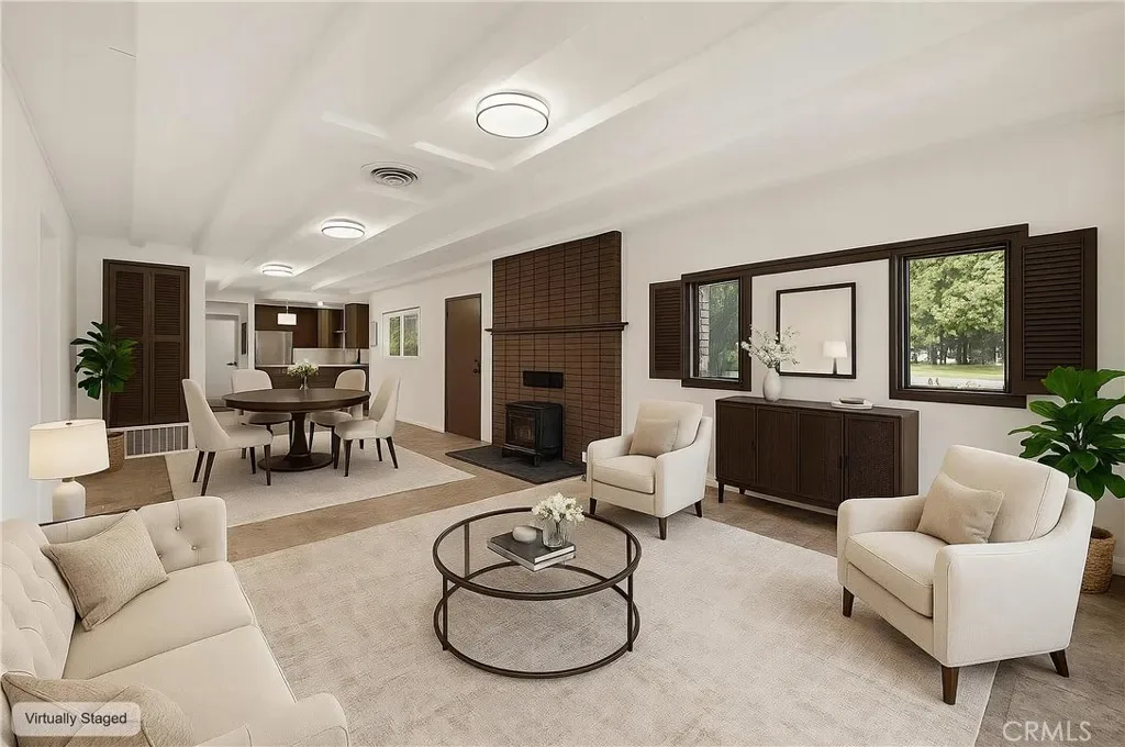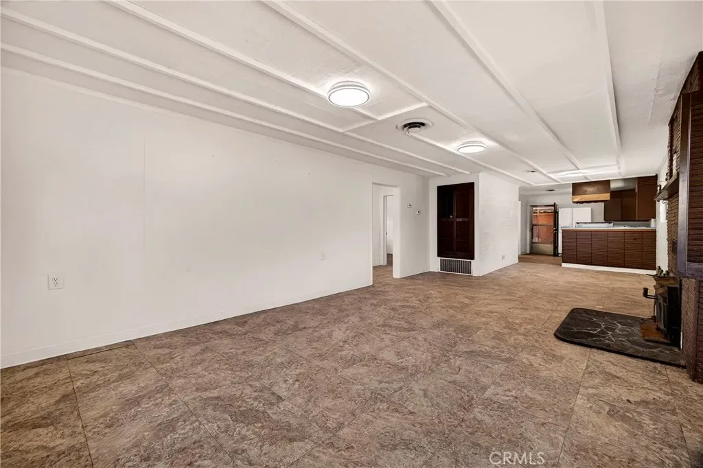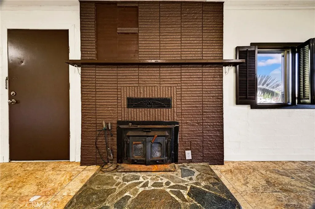 Inside, you’ll find a bright and refreshed interior featuring new paint and modern LED lighting throughout. The inviting living area is perfect for relaxing, complete with a cozy wood-burning fireplace. The kitchen offers a clean, functional layout with updated paint while maintaining its classic charm, and includes a refrigerator and stove.