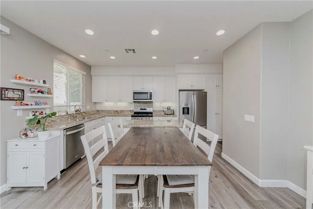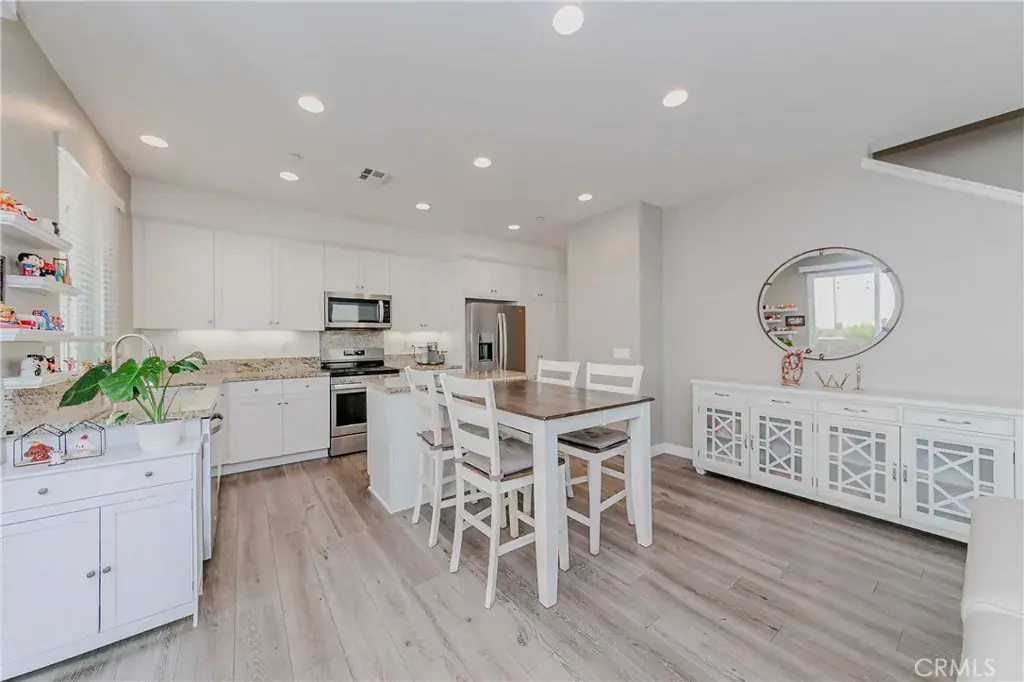Step inside through the extra-wide entry foyer with a coat closet. Be greeted by high ceilings and the easy-care elegance of durable Luxury Vinyl Plank flooring with upgraded flat baseboards throughout. The spacious living/great room flows seamlessly into a gourmet kitchen with an island, white cabinetry, granite counters, stainless steel appliances (range, microwave hood, dishwasher), recessed lighting, and a window over the stainless steel sink overlooking the private, paved patio — perfect for outdoor entertaining. A convenient downstairs powder room accommodates guests with ease.