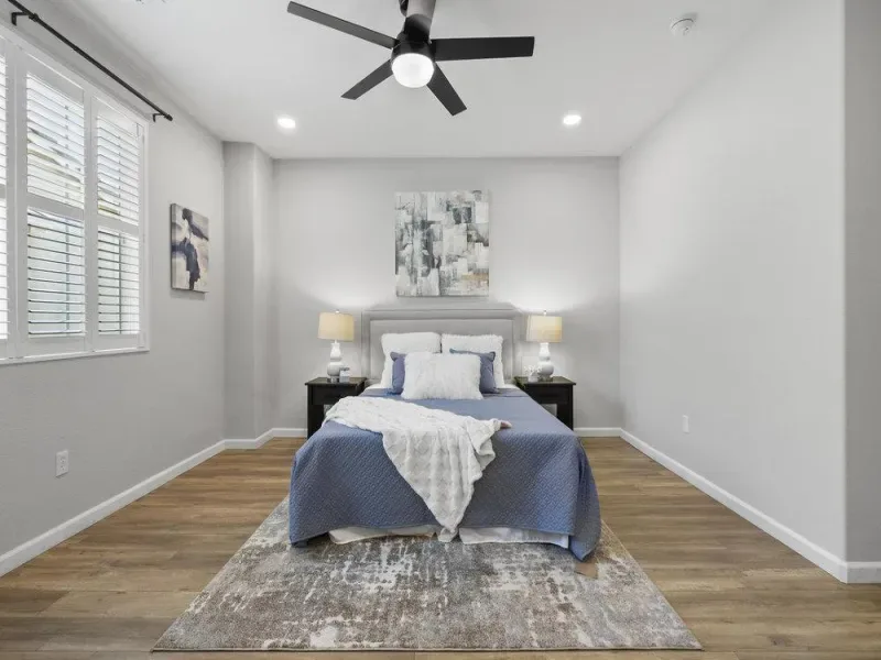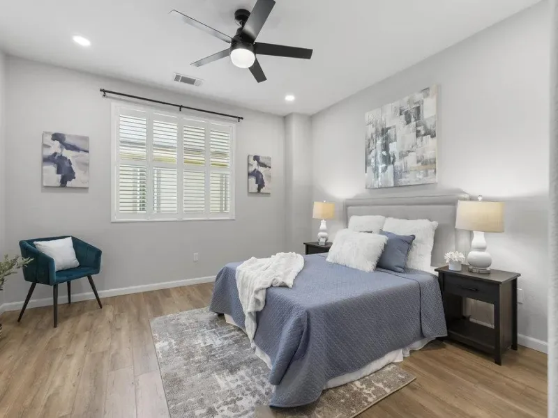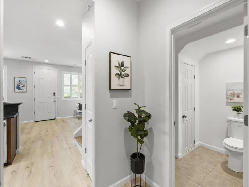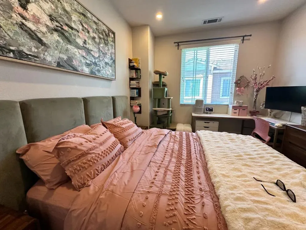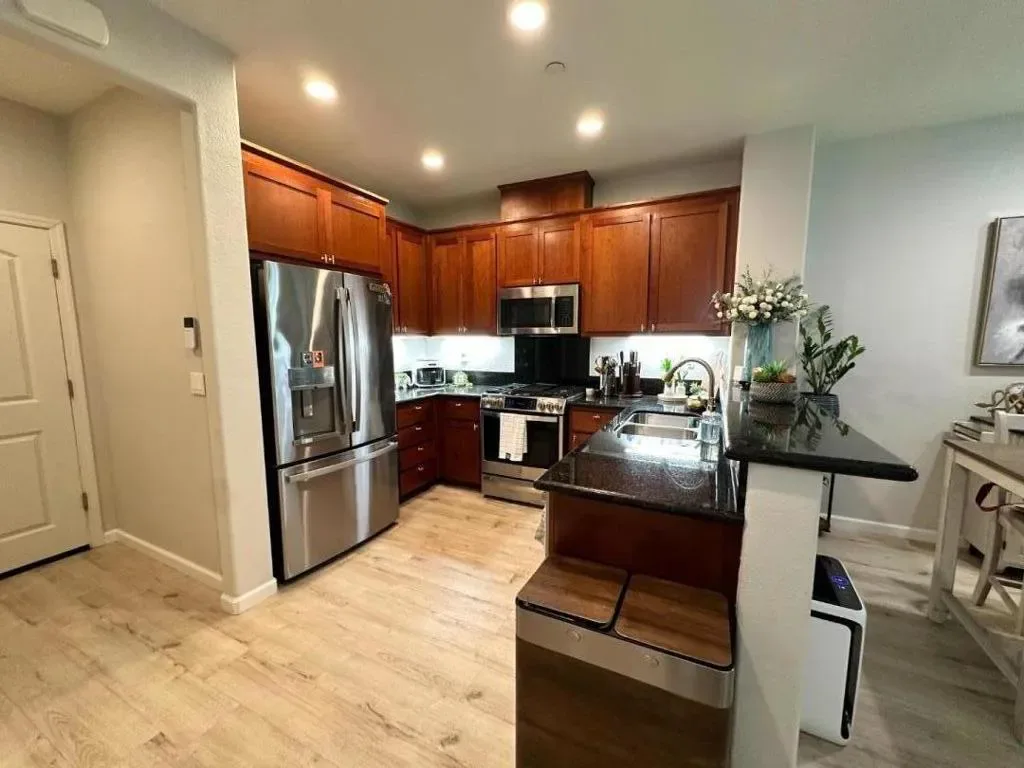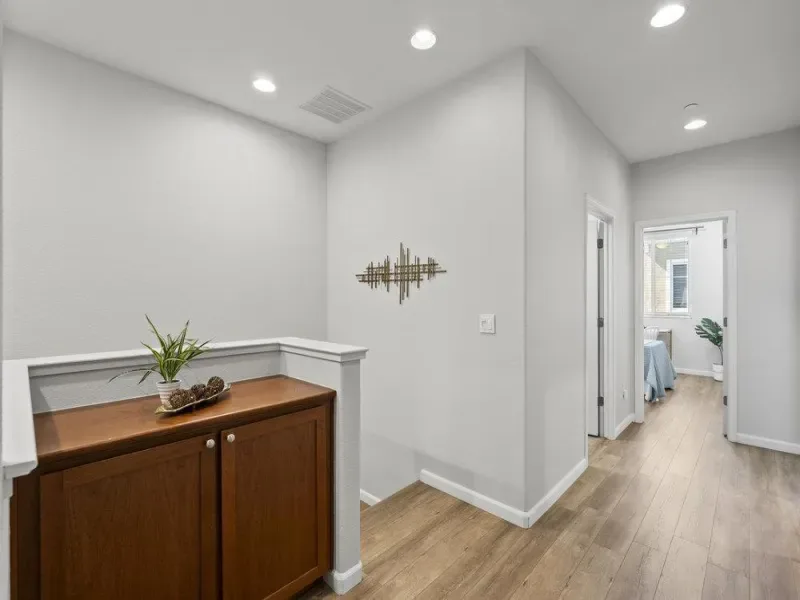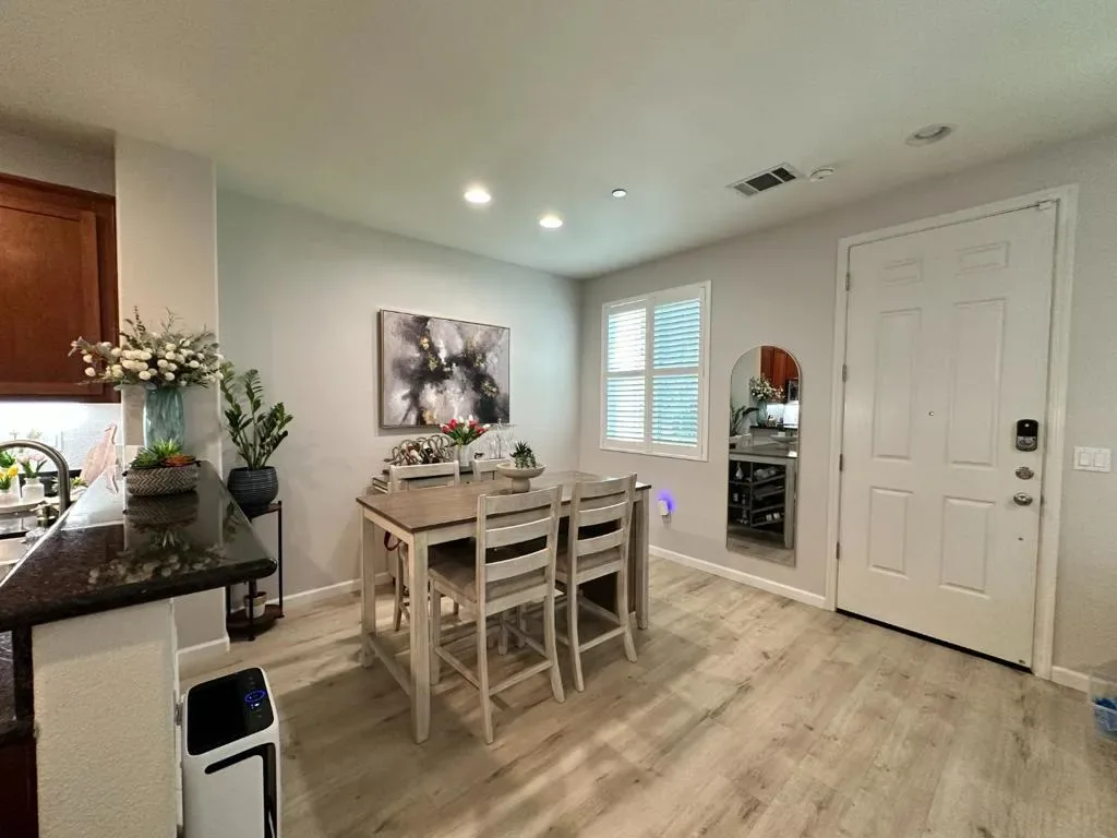 This tastefully updated property offers 1,542 square feet of thoughtfully designed living space, featuring 3 generous bedrooms and 2.5 bathrooms. The interior has been freshly painted and features luxury vinyl wood flooring throughout the main living areas. Situated in a secluded desirable safe location, this home perfectly combines modern amenities with functional design.. Key features include: Primary Suite: Includes a walk-in closet and an en-suite bathroom with a large walk-in shower. Additional Bedrooms: Two spacious rooms ideal for a home office, guests, or a growing family. Kitchen: An open-concept layout equipped with a refrigerator, stove, dishwasher, and microwave. Comfort & Security: The home is fitted with air conditioning, ceiling fans, a video security system, and a wired alarm. Convenience: Features an upstairs laundry room with a washer and dryer, an attached two-car garage, and attic space for extra storage. Exceptional modern townhome available in Hayward. Shown by appointment. Thank you