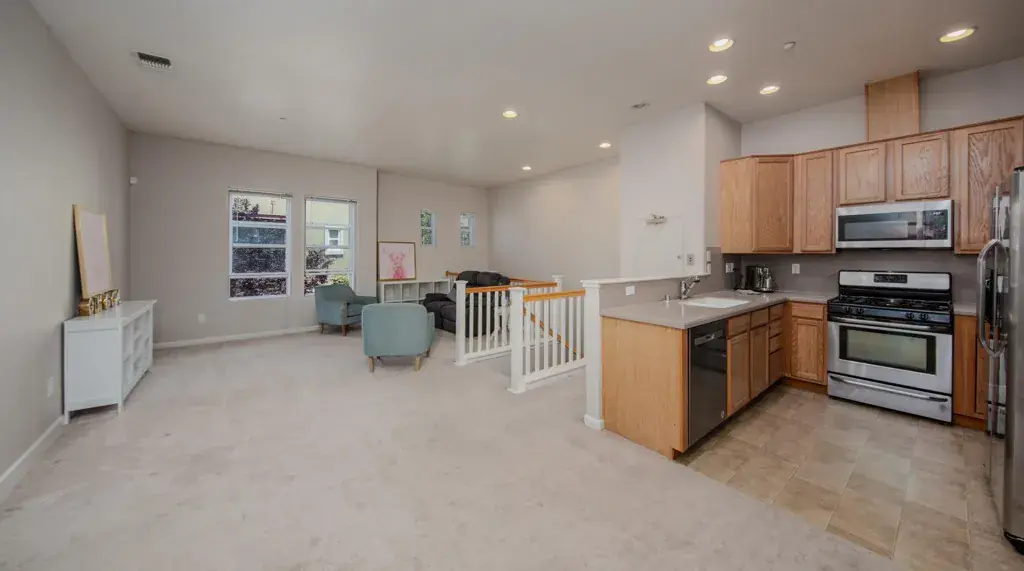 Welcome to 640 Plaza Place, a beautifully designed residence located near vibrant downtown Hayward. This charming home offers a perfect blend of comfort and convenience, making it an ideal choice for discerning buyers. Spanning 1,700 square feet, this home features an open floor plan that seamlessly connects the living, dining, and kitchen areas, creating an inviting space for both relaxation and entertainment. The kitchen is designed to cater to all your culinary needs, offering ample counter space and modern appliances. The property boasts three bedrooms, including a spacious primary suite that serves as an exceptional retreat. The primary suite includes an en-suite bathroom, with a second closet. An additional full bathroom ensures convenience for family members and guests alike. One of the standout features of this home is its proximity to downtown Hayward, offering easy access to a variety of dining, shopping, and entertainment options. The location provides the perfect balance of suburban tranquility and urban accessibility. Additional amenities include an in-unit laundry area, ensuring ease and and a two-car garage that provides ample storage and parking space.