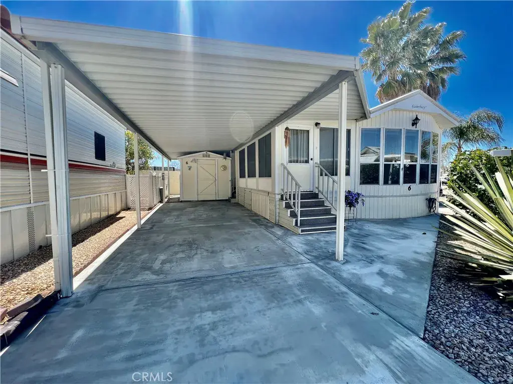 PRICE REDUCED! OWN YOUR LAND! LARGE “A” LOT! MOVE IN READY! Be the King & Queen of your CASTLE! Fully furnished, just bring your toothbrush. Located in the desirable Mt Shadows RV Resort 55+ gated senior community. Featuring 1 Bedroom, 1 Bathroom, full-length grandfathered-in California room, a covered carport and large detached storage shed. Shows beautifully with vaulted ceiling, two ceiling fans and laminated wood flooring throughout. New energy efficient, freestanding HVAC providing heat & air. Kitchen has a freestanding range, built-in microwave and newer refrigerator and is fully equipped with cookware. Master bedroom and hallway have mirrored doors. Bedroom also has doors to bathroom, backyard and patio. Bathroom has shower/tub combo, newer toilet and extra storage cabinets. The California patio room has front, side and back entrances and could easily be used as second bedroom or living space. The backyard has a nice stucco wall and vinyl lattice side fencing. Great for entertaining with a back porch view of the sunset. Two orange trees to enjoy in season. The concrete pad runs under the park model. The roof was redone in 2020. GREAT LOCATION near the main clubhouse, office, pool, hot tub, shuffleboard, billiard room, library, gym, card room, craft room, two laundry rooms, showers, indoor and outdoor kitchen, BBQ area, horseshoes and large auditorium/party room where most of the fun community activities take place. Just stroll on over to enjoy. A second, smaller clubhouse, laundry and hot tub located toward back of park. LOW HOA FEES of “ONLY” $292.00/month INCLUDES WATER, SEWER, TRASH, BASIC CABLE AND INTERNET. WHAT A DEAL! This is resort living at its finest!