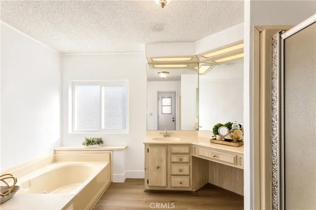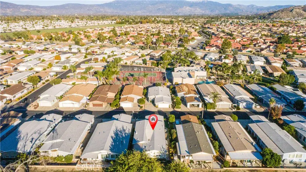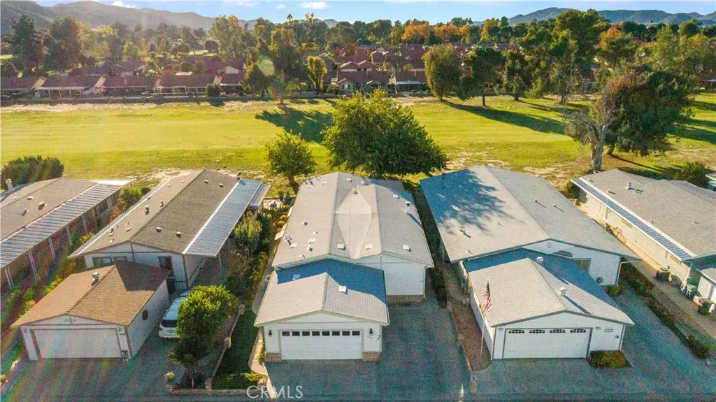 Beautiful & Rare TRIPLE WIDE SINGLE STORY Home in GATED 55+ East Lake Estates. You OWN THE LAND. Located on Private VIEW LOT on the Golf Course w/No Neighbors Behind You. UPGRADES Include VINYL WINDOWS, NEW PAINT, NEW VINYL FLOORS, NEW CARPET & BASEBOARDS, Newer Roof, Newer A/C & Newer Siding. This Well-Designed Layout Includes 1,900 Square Feet, 2 Bedrooms, 2 Baths & Detached 2 Car Garage. The OVERSIZED Great Room is LIGHT & BRIGHT w/Vaulted Beamed Ceiling, Cozy Fireplace & Built-In Bar. The Kitchen is Conveniently Located Off Great Room w/Ample Cabinets for Storage, Refrigerator, Microwave and Includes Large Window Over the Sink Letting in Tons of Light. The Dining Area off the Kitchen & Great Room Includes a Built-in Hutch & Large Window to Let in Plenty of Light. The Primary Bedroom Includes a MASSIVE Walk-In Closet & Private Bath w/Dual Sinks, Soaking Tub & Walk-In Shower. The Second Bedroom Includes Walk-In Closet & Private Bath w/Tub & Shower. The Laundry Room Includes Wash & Dryer & Has Convenient Deep Sink, Large Counter Area & Overhead Storage. There is a Door w/Heavy Duty Screen off the Laundry Room for Easy Access to the Garage. The Detached 2-Car Garage Includes Work Bench & 2 Door Garage Door & Side Door Access. There is an Additional Exterior Parking Space Next to the Garage Making 3 Parking Spots. The East Lake Estate Community Offers a Variety of Amenities Including Club House, Swimming Pool, Spa, Fitness Center, Tennis & Pickleball, Game Room, Full Kitchen, Meeting Room & Book/Reading Room Offers a Variety of Planned Community Events. The PRIVATE GATED Community of East Lake is Perfectly Located in a Quiet Area Yet Minutes to Shopping, Restaurants, Diamond Valley Lake & Temecula Wine Country. This Peaceful Serene Community Also Offers LOW TAXES & HOA Making it More Desirable. Come Experience the Vibrant Lifestyle of East Lake Estates & This Beautiful Move-In Ready Home.