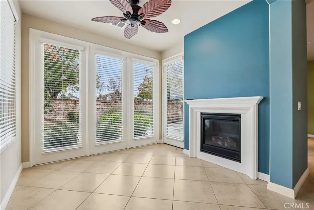 Welcome to resort-style living in the highly sought-after 55+ Solera Diamond Valley Community by Del Webb! This meticulously upgraded 2-bedroom, 2-bathroom home with a den/office offers 1,734 square feet of stylish and functional living space designed for comfort and elegance. From the moment you arrive, the exceptional curb appeal is evident with top-of-the-line drought-tolerant landscaping and a river rock bed creating a stunning, low-maintenance front yard. The beauty continues in the backyard with equally impressive water-wise landscaping—your private outdoor oasis. Inside, you’ll be impressed by the tile flooring laid diagonally at a 45-degree angle, elevating the home’s custom feel. The open-concept kitchen is a true showstopper, featuring an upgraded stainless steel appliance package, a built-in range, a walk-in pantry, designer tile backsplash, a huge center island, and sleek upgraded fixtures. Whether you’re hosting or enjoying a quiet night in, the layout flows beautifully into the living and dining areas. A gorgeous sunroom adds extra living space and includes a cozy fireplace, perfect for year-round relaxation. The spacious primary suite serves as a serene retreat, complete with a generous walk-in closet, a luxurious bath, dual sinks, and a step-in shower. The guest bedroom and second full bath are perfect for visitors or multi-purpose use. Need a home office or hobby room? The dedicated den/office offers flexible space to meet your needs. A well-appointed laundry room with extra storage keeps everything organized, and the garage includes built-in cabinets for even more storage solutions.