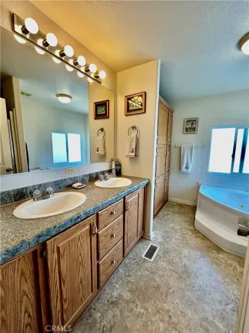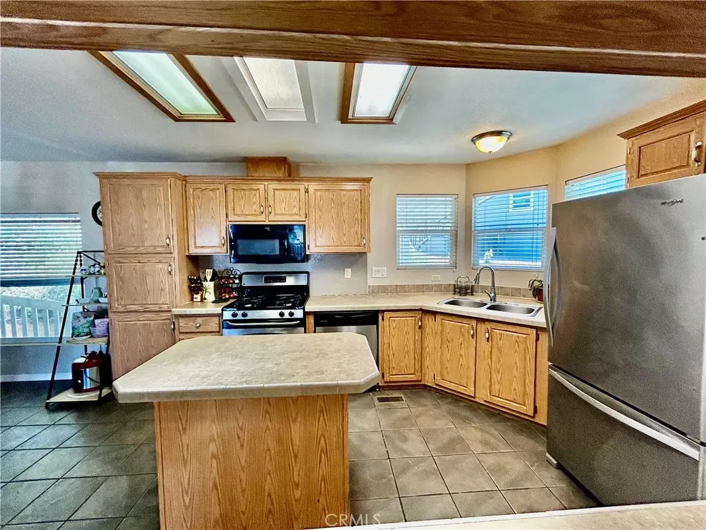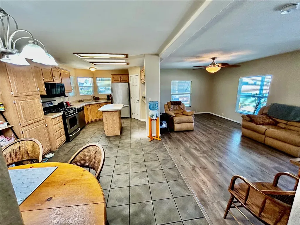 Welcome to this beautiful move in ready huge corner lot with an amazing view !!! This 3 bedroom, 2-bath home in a gated, all-age family park! Inside, you’ll find tile and laminate flooring throughout, ceiling fans in every room, and a spacious kitchen with a center island. Master bathroom has huge soaking tub with a separate shower, The washer, dryer, and refrigerator are all included, carport can hold 2-3 cars and a storage shed making this home move-in ready.