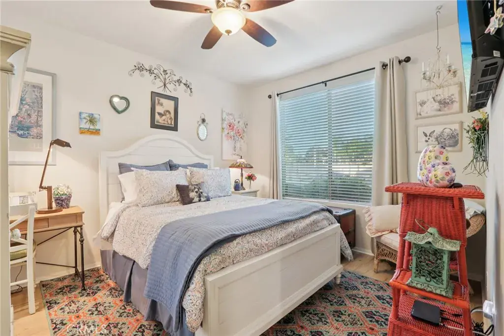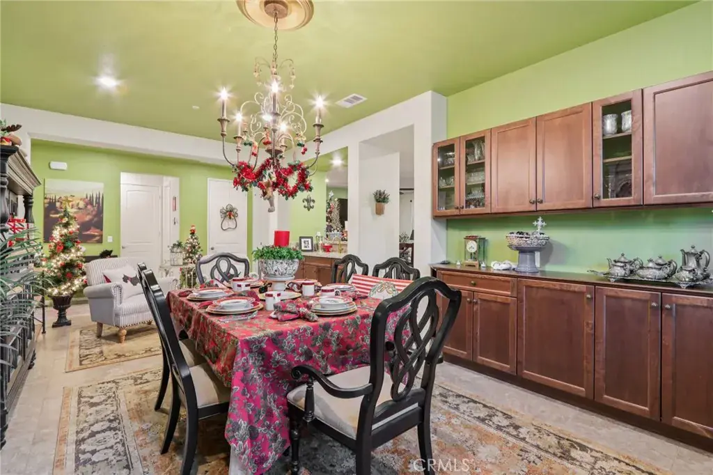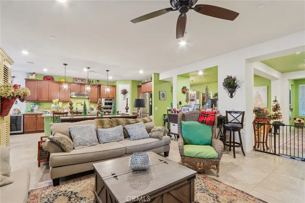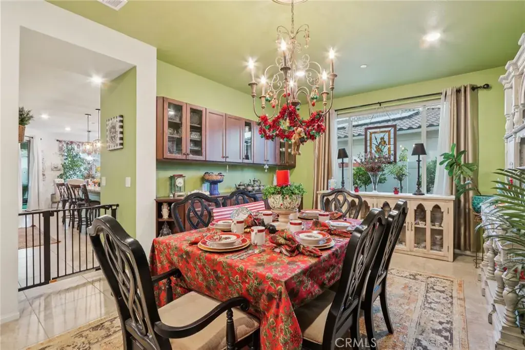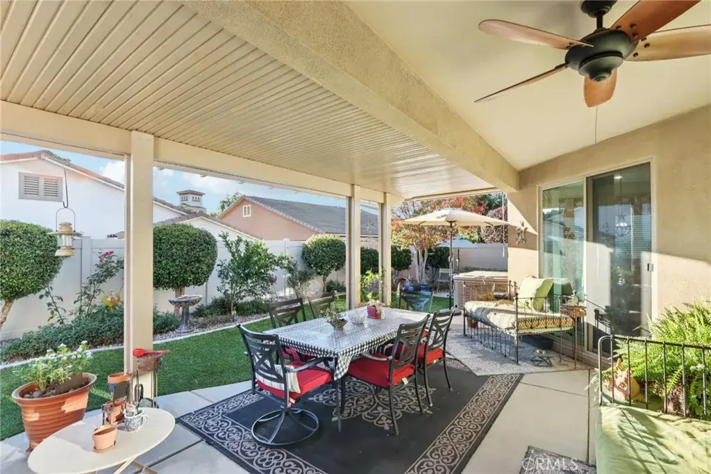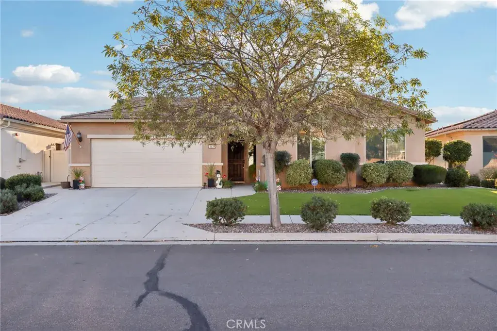 Location, location, location! This beautifully upgraded home is just around the corner from the Del Webb clubhouse, giving you effortless access to world-class amenities, social activities, and the vibrant 55+ lifestyle—just steps from your front door. Step inside to a bright and airy open-concept floorplan that blends spacious living with modern elegance. The main living areas feature 20-inch tile flooring, while all bedrooms boast upgraded laminate wood flooring and enhanced cabinet hardware and fixtures throughout. Ceiling fans, custom paint, custom faucets and custom lighting throughout. Entertaining is effortless in the formal dining room with custom built-in cabinetry and a stylish bar area, while the kitchen’s cozy breakfast nook provides the perfect spot for morning coffee with views of the backyard. This 3-bedroom, 3-bath home offers flexible living options. The third bedroom serves as a private suite with a walk-in closet and private step-in shower. The primary suite opens directly to the backyard patio through a security screen door and boasts an ensuite bath with brass fixtures and an upgraded vanity. Enjoy low-maintenance outdoor living with drought-tolerant landscaping and artificial turf in both the front and back yards, complemented by a California-style Alumawood patio cover with ceiling fan and two can lights—perfect for relaxing or entertaining year-round. Two storage sheds transfer with the property. Both the front entry and primary bedroom patio access feature security screen doors for comfort and airflow. The garage is a standout, with built-in cabinets, a workbench, overhead storage, and a tankless water heater, making organization and functionality a breeze. Inside, a private laundry room with sink and ample storage adds even more convenience. With its unbeatable location near the clubhouse, resort-style amenities at your doorstep, thoughtful upgrades, and beautiful drought-tolerant landscaping, this home is truly turnkey and ready for you to enjoy the best of Del Webb living. This home is just minutes walk from the clubhouse, where you can take advantage of fitness centers, pools, and social activities.