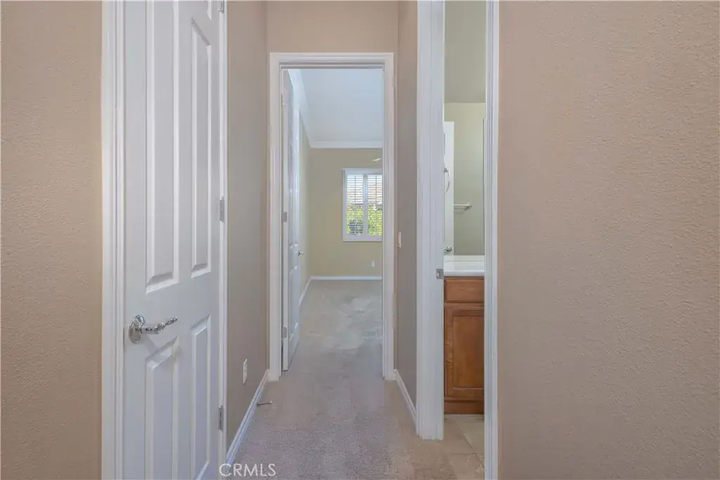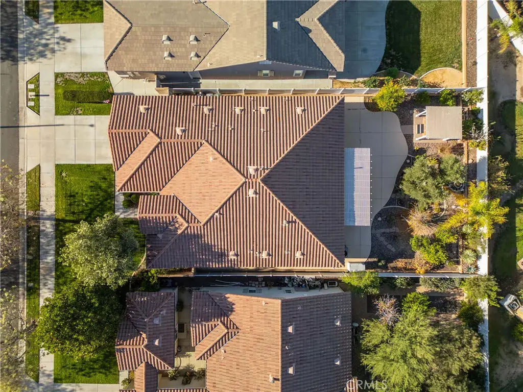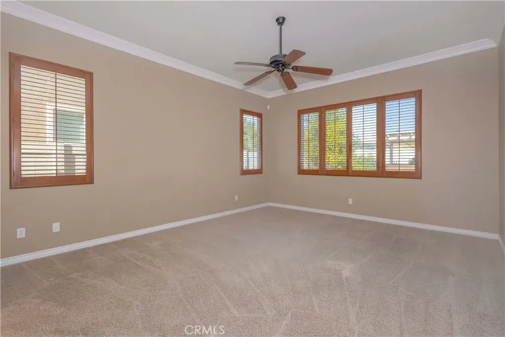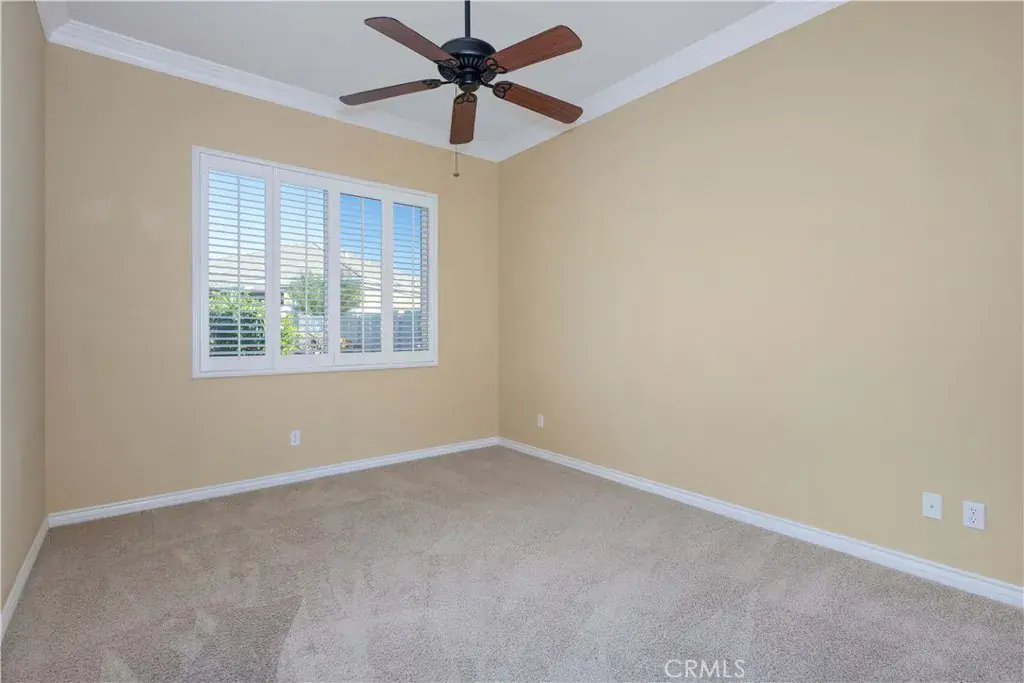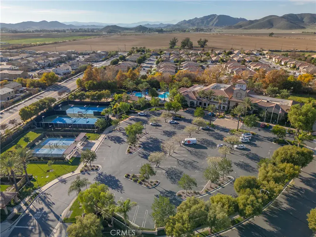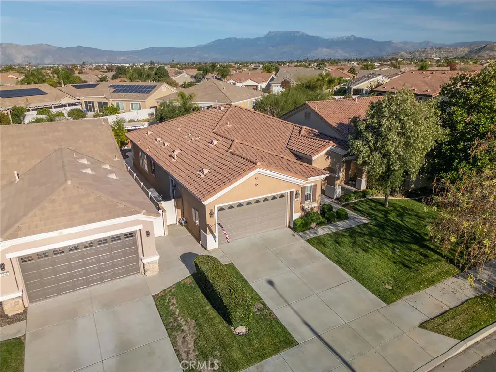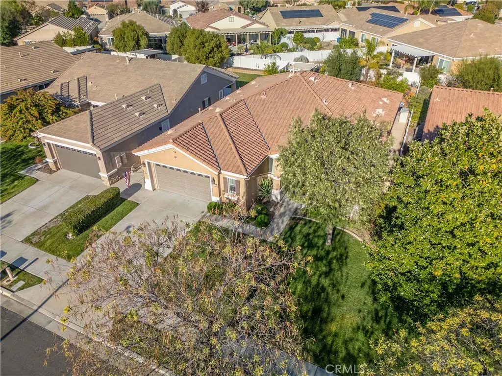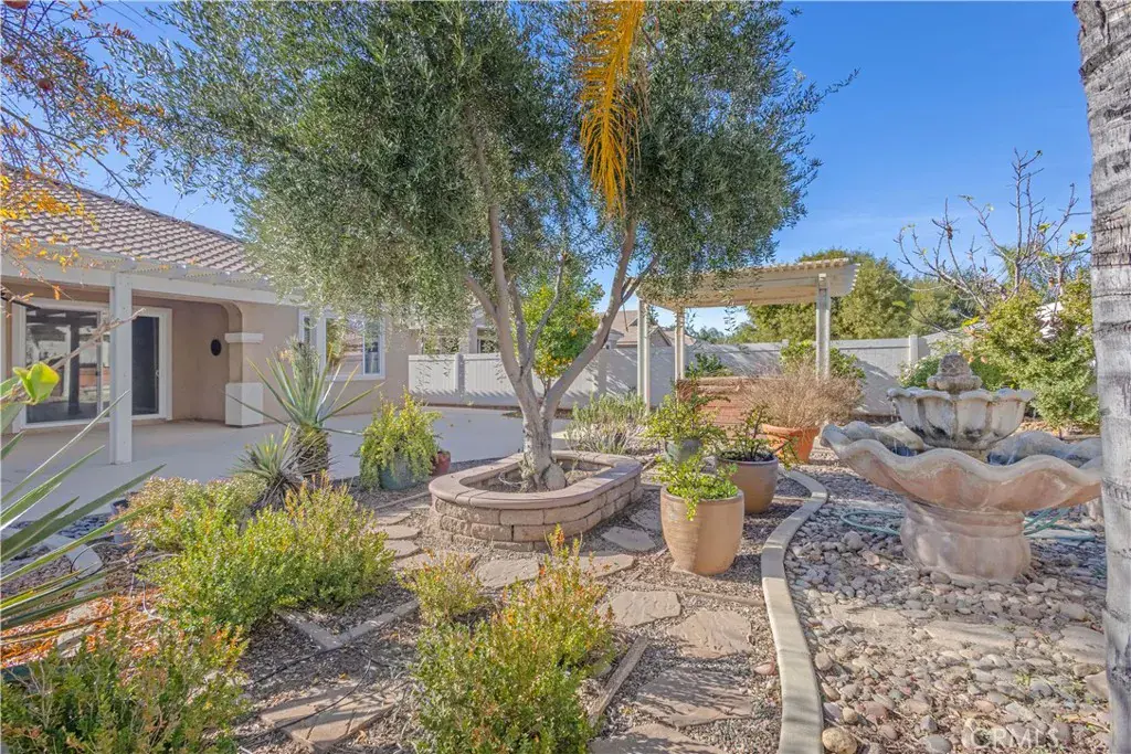 HUGE PRICE DROP! Welcome to this beautifully upgraded home located in the highly desirable 55+ community of Solera Diamond Valley by Del Webb; located within walking distance to clubhouse. Thoughtfully enhanced from top to bottom, this spacious & versatile popular “El Dorado” floor plan offers 2 bedrooms (each on opposite sides of home) 2.5 bathrooms, formal dining room & generous bonus room that can be used as a den, hobby room, exercise rm, or optional 3rd BD. From the moment you enter, you’ll notice the attention to detail with crown molding throughout, custom plantation shutters, upgraded paint, & ceiling fans in nearly every room, including the patio. The open-concept kitchen flows seamlessly into family room & features stainless steel appliances, center island with breakfast bar, Corian countertops, recessed lighting, upgraded cabinetry, pull-out shelving & newer sink. The primary suite is a true retreat, offering a large walk-in closet with custom shelving & a spa-inspired bath complete with oversized soaking tub, separate step-in shower featuring a custom teakwood shower mat & dual vanities. The half bath has been tastefully updated with bead board accents & Pottery Barn mirror. The laundry room includes upper & lower cabinetry, utility sink & decorative stainless shelving. Step outside through oversized sliding doors to a peaceful & meticulously designed backyard oasis, complete with private Caldera spa which includes pump, filter, ozone system & heater. Enjoy year-round relaxation under the extended alumawood patio cover with ceiling fan or gather around the freestanding outdoor fireplace with chimney. Custom concrete, river rock, stepping stones, fountain, raised planters, fruit trees, solar lighting, perimeter water faucets, block walls & vinyl fencing create a serene & functional outdoor living space. The garage is equally impressive with epoxy flooring, Gladiator cabinets, rail systems with hooks, Rubbermaid mounting bars, upgraded lighting, workbench with solid wood top, replaced garage door opener, newer gas water heater & replaced pressure regulator. Residents enjoy resort-style amenities including indoor & outdoor pools, spa, workout fitness center that includes indoor walking track, library, billiard tables, conference rooms, bocce ball courts, pickleball courts & tennis courts. The community has daily, monthly & annual events that bring the community together! This exceptional home offers comfort, quality & lifestyle; truly a must-see!