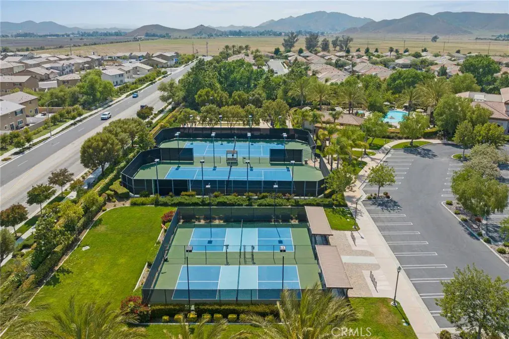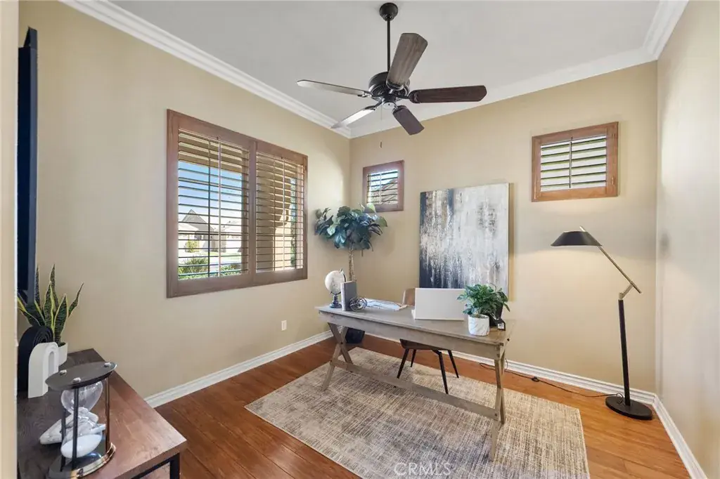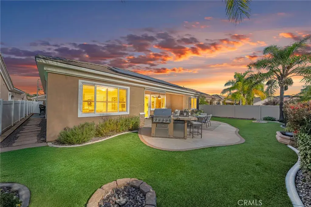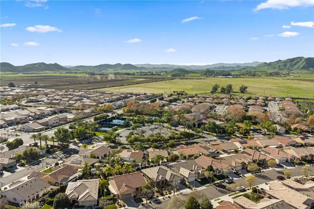 *UPGRADED * SOLAR TO SAVE $$ * SPLIT BEDROOM LAYOUT + OFFICE * ACTIVE 55+ LIVING Welcome home to this beautifully maintained SINGLE story residence offering 2,230 square feet w/ 2 BR plus a dedicated office, ideal for those who want the benefits of a 55+ community without sacrificing space, flexibility, or comfort. Located in the highly desirable Solera Diamond Valley community, this home immediately impresses w/ low maintenance, drought tolerant landscaping, a PAVER walkway, a charming front porch, and an UPGRADED FRONT DOOR w/ leaded glass. Upon entry, the front office offers flexible living options & could easily serve as a 3RD BEDROOM, craft room, workout space, or private office. The spacious kitchen is the heart of the home & features granite counters, rich cabinetry w/custom pull outs throughout, a center island, a large eat in island,& a separate nook for casual dining. The kitchen opens seamlessly to the expansive family room showcasing wood floors, a cozy FIREPLACE, & ceiling fan, while the separate dining room is perfect for hosting holiday meals & special gatherings. Just off the family room you’ll find a convenient powder room & a laundry room w/ abundant storage & a utility sink. One of the standout features of this floorplan is the thoughtful bedroom separation. The primary suite w/new carpet & views to the backyard, is privately located on one end of the home & offers an ensuite w/a NEWLY INSTALLED WALK IN SHOWER, soaking tub, dual sinks, linen storage, & a generous walk in closet. On the opposite end of the home, a spacious secondary bedroom w/ceiling fan & mirrored wardrobe sits next to a FULL BATH, making it ideal for guests or a caretaker. Step outside to your own private backyard oasis featuring a CA ROOM w/ ceiling fan, BBQ island, & low maintenance artificial turf. The oversized 2 car GA is finished w/ epoxy floors & extensive storage cabinetry. Additional UPGRADES include PLANTATION SHUTTERS, CROWN MOLDING, WOOD LAMINATE FLOORS, & SOLAR panels to help keep energy costs low. Solera Diamond Valley is a premier 55+ community offering a resort style clubhouse, pools & spa, fitness center, indoor walking track, pickleball & tennis courts, clubs, social groups, & a full calendar of weekly & monthly activities & events, w/this home conveniently located just around the corner from the clubhouse. Ideally located near Domenigoni Parkway & Warren Road, offering convenient access to shopping, dining, & services in both Hemet & nearby Menifee.