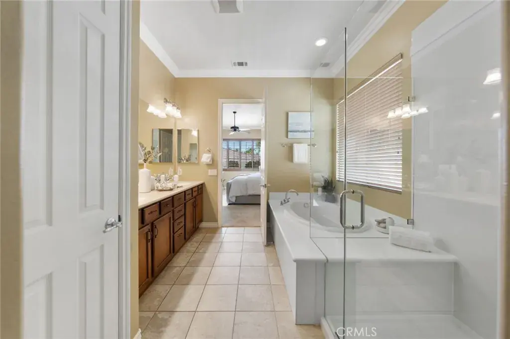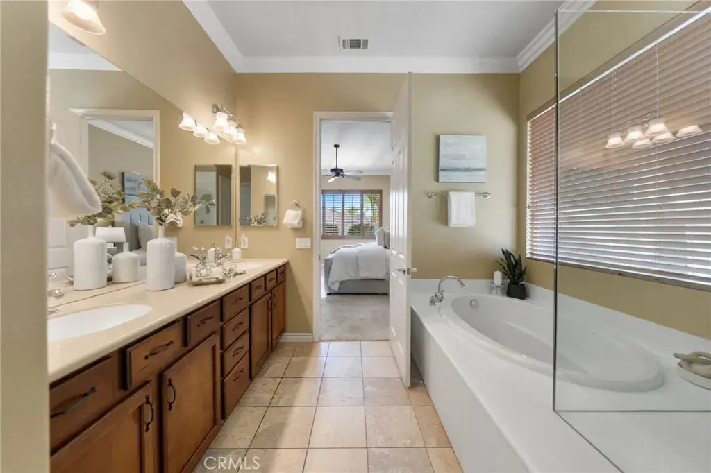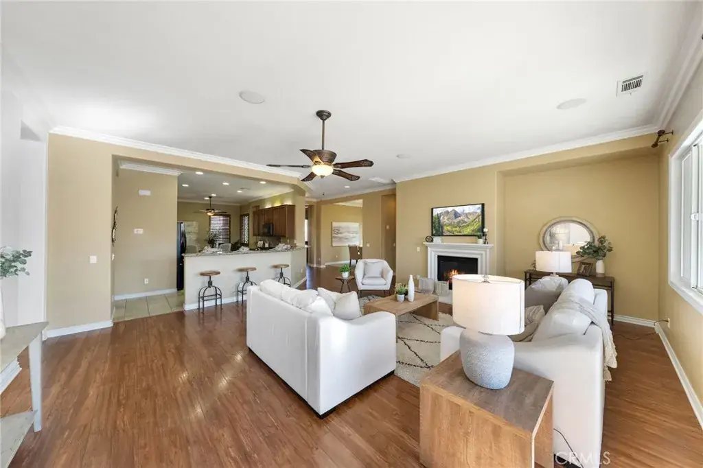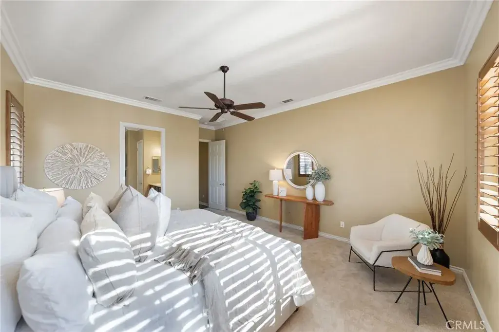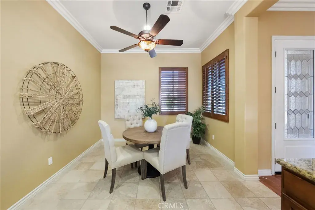 *UPGRADED * SOLAR TO SAVE $$ * SPLIT BEDROOM LAYOUT + OFFICE * ACTIVE 55+ LIVING Welcome home to this beautifully maintained SINGLE story residence offering 2,230 square feet w/ 2 BR plus a dedicated office, ideal for those who want the benefits of a 55+ community without sacrificing space, flexibility, or comfort. Located in the highly desirable Solera Diamond Valley community, this home immediately impresses w/ low maintenance, drought tolerant landscaping, a PAVER walkway, a charming front porch, and an UPGRADED FRONT DOOR w/ leaded glass. Upon entry, the front office offers flexible living options & could easily serve as a 3RD BEDROOM, craft room, workout space, or private office. The spacious kitchen is the heart of the home & features granite counters, rich cabinetry w/custom pull outs throughout, a center island, a large eat in island,& a separate nook for casual dining. The kitchen opens seamlessly to the expansive family room showcasing wood floors, a cozy FIREPLACE, & ceiling fan, while the separate dining room is perfect for hosting holiday meals & special gatherings. Just off the family room you’ll find a convenient powder room & a laundry room w/ abundant storage & a utility sink. One of the standout features of this floorplan is the thoughtful bedroom separation. The primary suite w/new carpet & views to the backyard, is privately located on one end of the home & offers an ensuite w/a NEWLY INSTALLED WALK IN SHOWER, soaking tub, dual sinks, linen storage, & a generous walk in closet. On the opposite end of the home, a spacious secondary bedroom w/ceiling fan & mirrored wardrobe sits next to a FULL BATH, making it ideal for guests or a caretaker. Step outside to your own private backyard oasis featuring a CA ROOM w/ ceiling fan, BBQ island, & low maintenance artificial turf. The oversized 2 car GA is finished w/ epoxy floors & extensive storage cabinetry. Additional UPGRADES include PLANTATION SHUTTERS, CROWN MOLDING, WOOD LAMINATE FLOORS, & SOLAR panels to help keep energy costs low. Solera Diamond Valley is a premier 55+ community offering a resort style clubhouse, pools & spa, fitness center, indoor walking track, pickleball & tennis courts, clubs, social groups, & a full calendar of weekly & monthly activities & events, w/this home conveniently located just around the corner from the clubhouse. Ideally located near Domenigoni Parkway & Warren Road, offering convenient access to shopping, dining, & services in both Hemet & nearby Menifee.