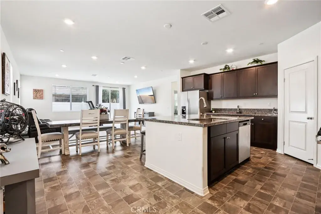 Welcome to this stunning, nearly new home in the highly desirable Saddlepoint Community, built in 2022 and thoughtfully designed with modern living in mind. Offering 2,201 sq ft, this 3-bedroom, 2-bath home features a bright open-concept layout that flows effortlessly from room to room. The heart of the home is the stylish kitchen, showcasing espresso cabinetry, recessed LED lighting, a walk-in pantry, and a generous kitchen island with bar seating for four—perfect for entertaining or everyday gatherings. The washer and dryer (less than one year old) and refrigerator are included, along with TVs and mounting brackets, making this home truly move-in ready. The spacious bedrooms provide comfort and flexibility, while the primary suite impresses with a large walk-in closet and a step-in shower in the primary bathroom. Additional highlights include a 3-car garage, paid solar with 9 panels, and drought-tolerant landscaping for low-maintenance outdoor living. Residents of Saddlepoint enjoy access to a community center featuring a pool, hot tub, and playground, adding to the lifestyle appeal of this exceptional home. Modern, efficient, and beautifully upgraded—this is Saddlepoint living at its best.