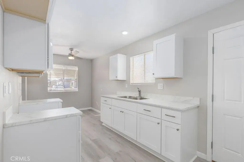 Welcome to this 2-bedroom, 1-bath residence located in West Hemet, close to restaurants, a shopping center, and medical facilities, with Low Taxes and an HOA of $36 per year! in the Valle Hermosa 55+ community. Recently remodeled, ready for its new owner. Inside, you’ll find beautiful luxury vinyl plank flooring throughout, recessed lighting, and a bright, open feel. The updated kitchen features newer cabinets, countertops, a stainless steel kitchen sink, faucet, microwave, and vent, making it both stylish and functional. The bathroom includes a shower/tub combo and an energy-efficient toilet. Additional upgrades include: Newer water heater, Updated electrical outlets throughout, Newer electrical panel, 220V in the garage – great for tools or a workshop setup, Newer interior panel doors, Blinds throughout, Newer window screens, Newer Sliding glass door opens to a good-sized backyard, Interior and Exterior recently painted—good-sized backyard with fruit trees. This home offers low-maintenance living, perfect for those looking to downsize. Conveniently located near shopping, dining, and medical facilities. Affordable, upgraded, and move-in ready — homes like this in Valle Hermosa don’t last. Schedule your showing today!!!