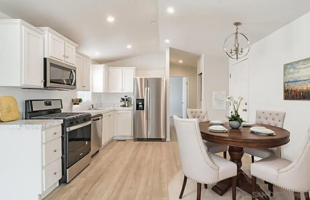 Pueblo Sereno, a charming 55+ mobile home park in Hemet, California, offers a brand-new 2-bedroom, 1-bath home with an open floor plan and stunning views of the Idyllwild mountains. The park features a sparkling pool, relaxing spa, horseshoe pit, dog park, and a vibrant community center. With space rent at just $540, this home combines modern comfort with an active and scenic lifestyle.