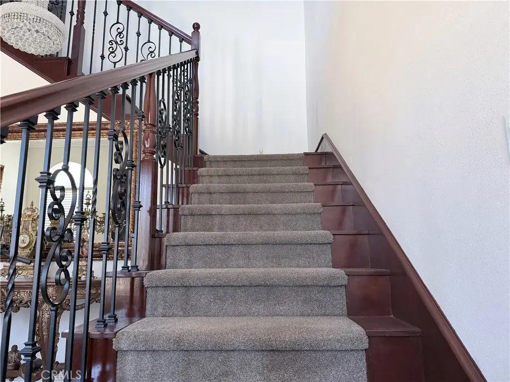 Soaring ceilings, luminous marble flooring, and a stunning wrought iron staircase welcome you home. Formal living and dining rooms flank the entryway, creating perfect spaces for entertaining.