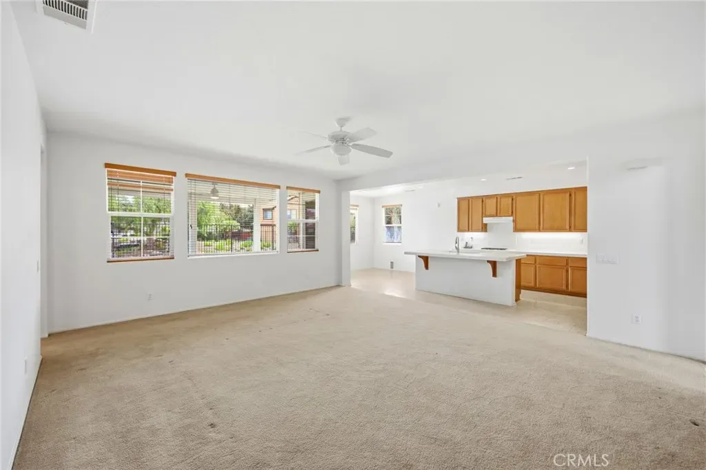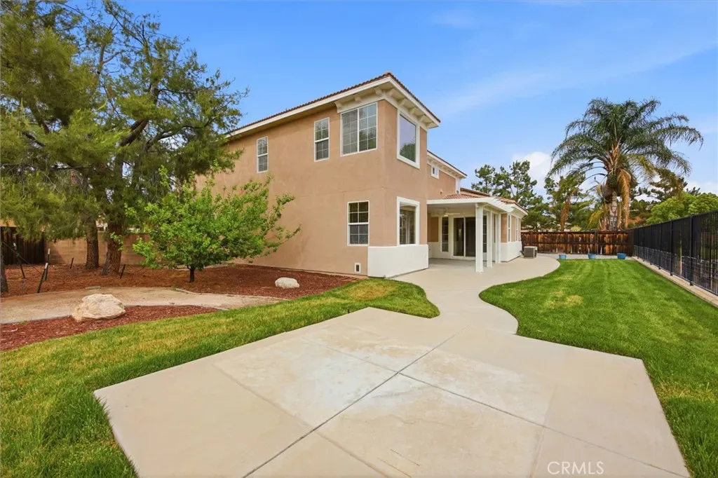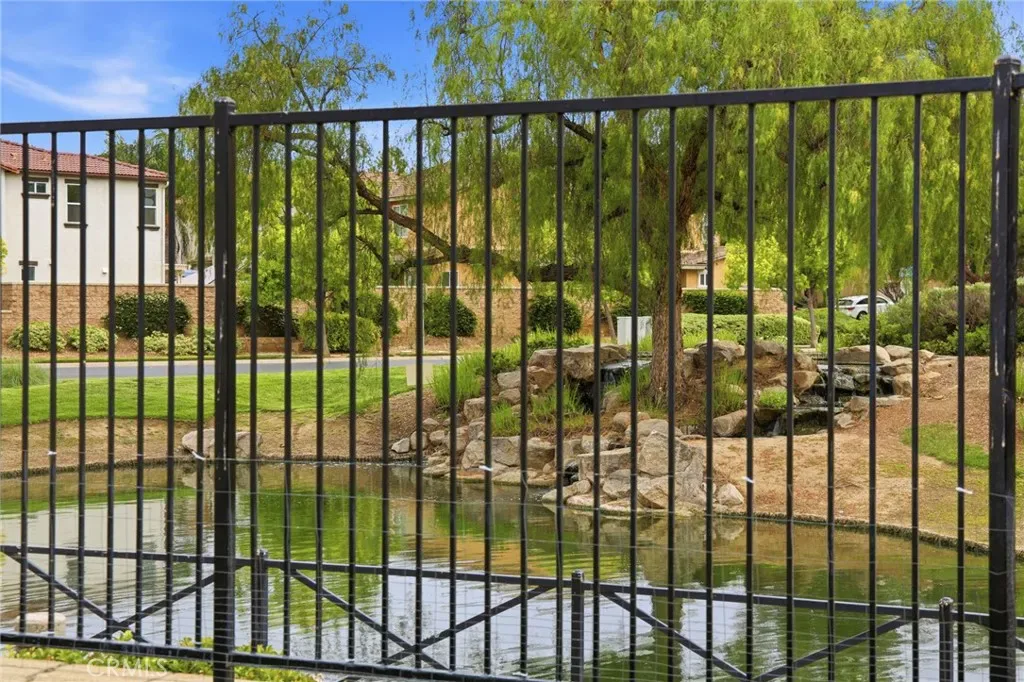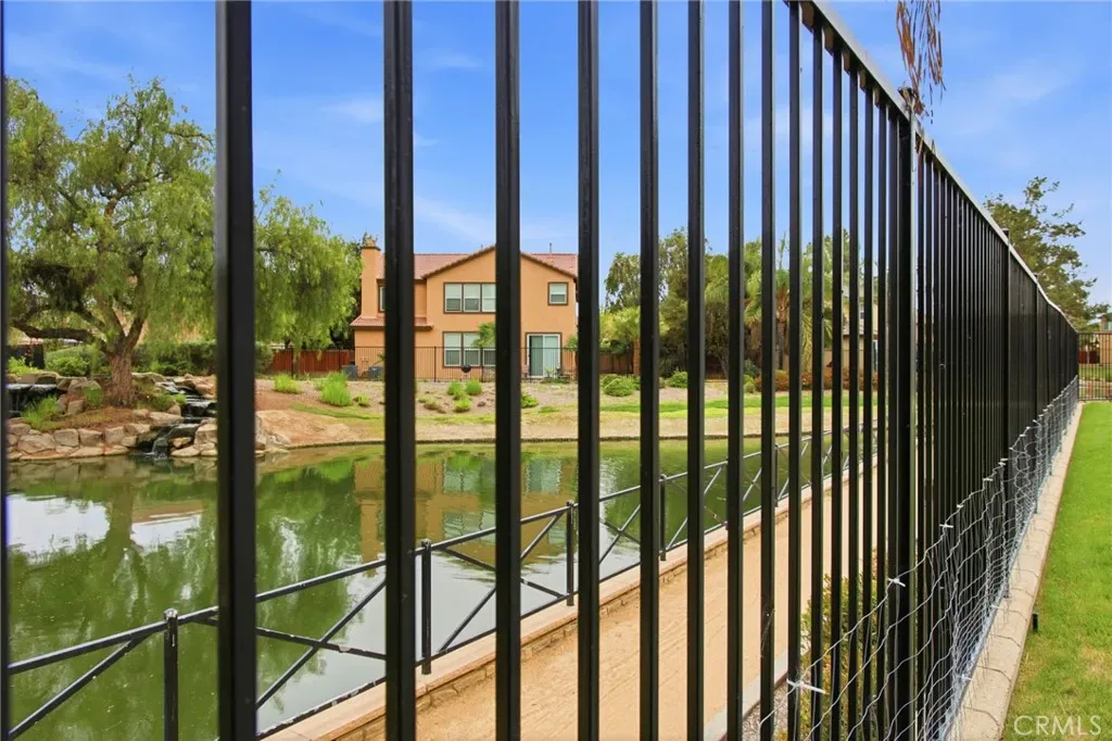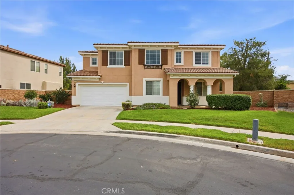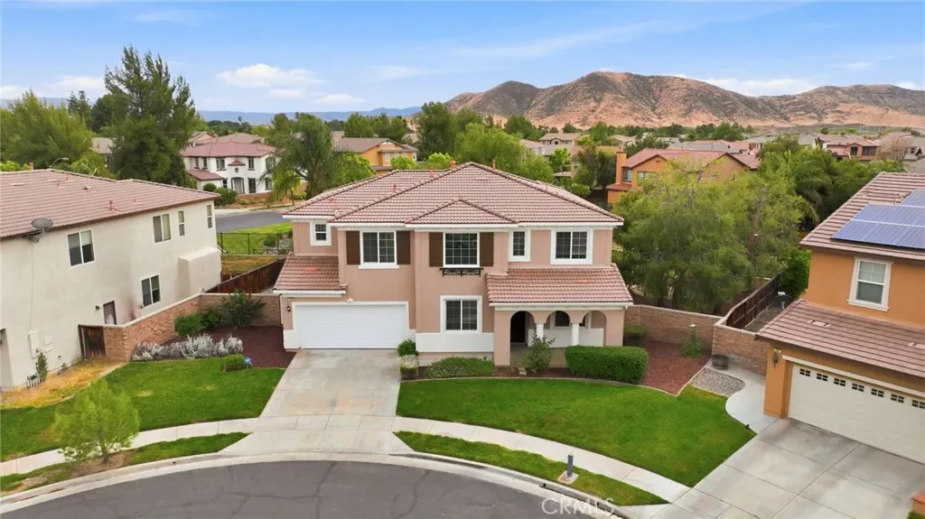 Located in the gated Willowalk Community of Hemet, this well-maintained 5-bedroom, 4.5-bath home sits on a quiet cul-de-sac and offers approximately 3,511 sq ft of well-designed living space on a 10,019 sq ft lot with a 3-car tandem garage. The open floor plan features a formal living room, formal dining area, and an expansive family room with fireplace that flows into a spacious kitchen with ample cabinetry and counter space, a large center island, butler’s pantry, and breakfast nook overlooking the backyard waterfall. The interior has been refreshed with new paint throughout, giving the home a clean, move-in-ready feel. The main level includes a private bedroom suite ideal for guests or multi-generational living, along with a large individual laundry room with built-in counters and utility sink. Upstairs offers four additional bedrooms, three full bathrooms, and a spacious loft with built-in desk that can serve as a second living area, TV room, or game room. The primary suite features a retreat area and dual closets, while the primary bathroom includes dual vanities, a soaking tub, and separate shower. Two secondary bedrooms share a Jack and Jill bathroom with dual vanities. The backyard is fully improved with a covered patio, concrete hardscape, mature landscaping, and fruit trees, all positioned to capture lake and waterfall views, creating a private setting for both entertaining and everyday living. Residents enjoy resort-style amenities including a pool, clubhouse, basketball court, playground, and scenic walking trails with lakes and water features, making this a standout opportunity in one of Hemet’s premier gated communities.