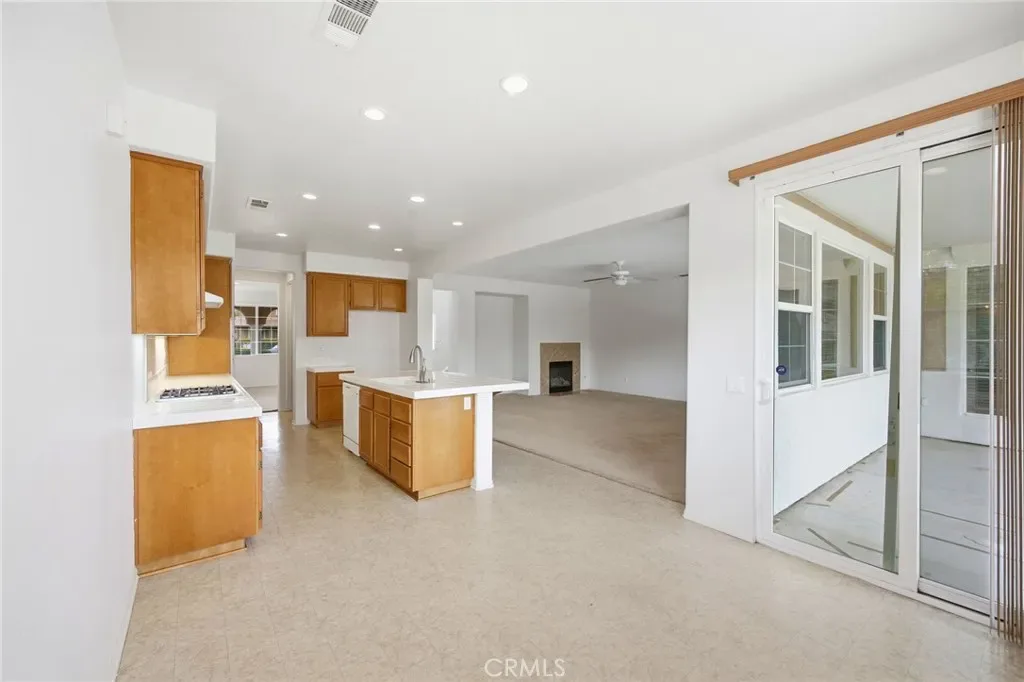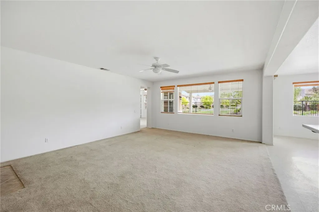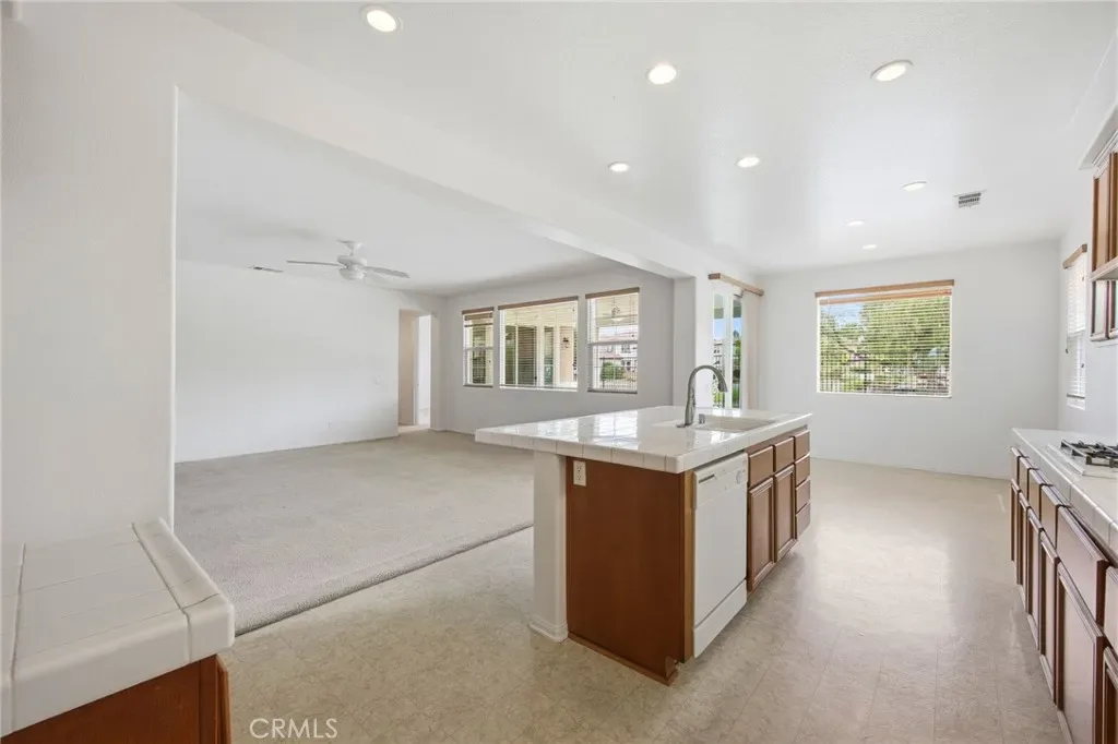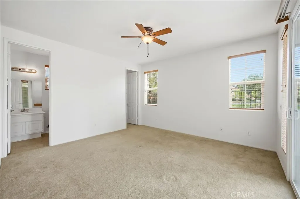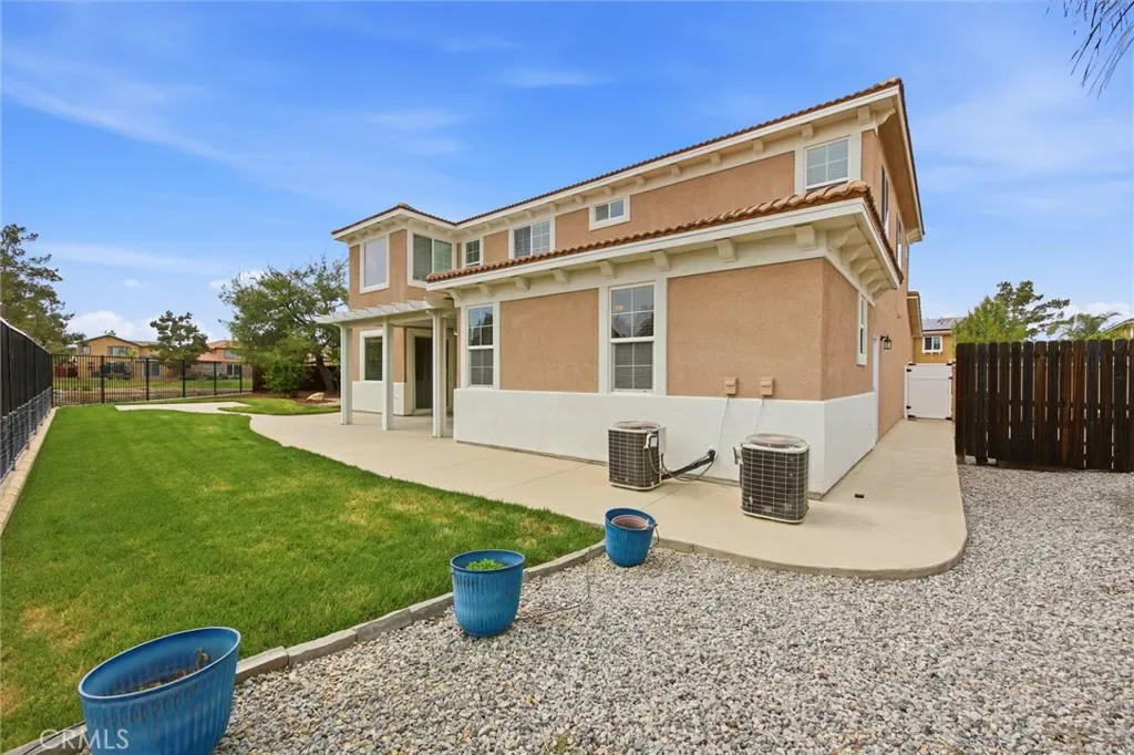 Located in the gated Willowalk Community of Hemet, this well-maintained 5-bedroom, 4.5-bath home sits on a quiet cul-de-sac and offers approximately 3,511 sq ft of well-designed living space on a 10,019 sq ft lot with a 3-car tandem garage. The open floor plan features a formal living room, formal dining area, and an expansive family room with fireplace that flows into a spacious kitchen with ample cabinetry and counter space, a large center island, butler’s pantry, and breakfast nook overlooking the backyard waterfall. The interior has been refreshed with new paint throughout, giving the home a clean, move-in-ready feel. The main level includes a private bedroom suite ideal for guests or multi-generational living, along with a large individual laundry room with built-in counters and utility sink. Upstairs offers four additional bedrooms, three full bathrooms, and a spacious loft with built-in desk that can serve as a second living area, TV room, or game room. The primary suite features a retreat area and dual closets, while the primary bathroom includes dual vanities, a soaking tub, and separate shower. Two secondary bedrooms share a Jack and Jill bathroom with dual vanities. The backyard is fully improved with a covered patio, concrete hardscape, mature landscaping, and fruit trees, all positioned to capture lake and waterfall views, creating a private setting for both entertaining and everyday living. Residents enjoy resort-style amenities including a pool, clubhouse, basketball court, playground, and scenic walking trails with lakes and water features, making this a standout opportunity in one of Hemet’s premier gated communities.